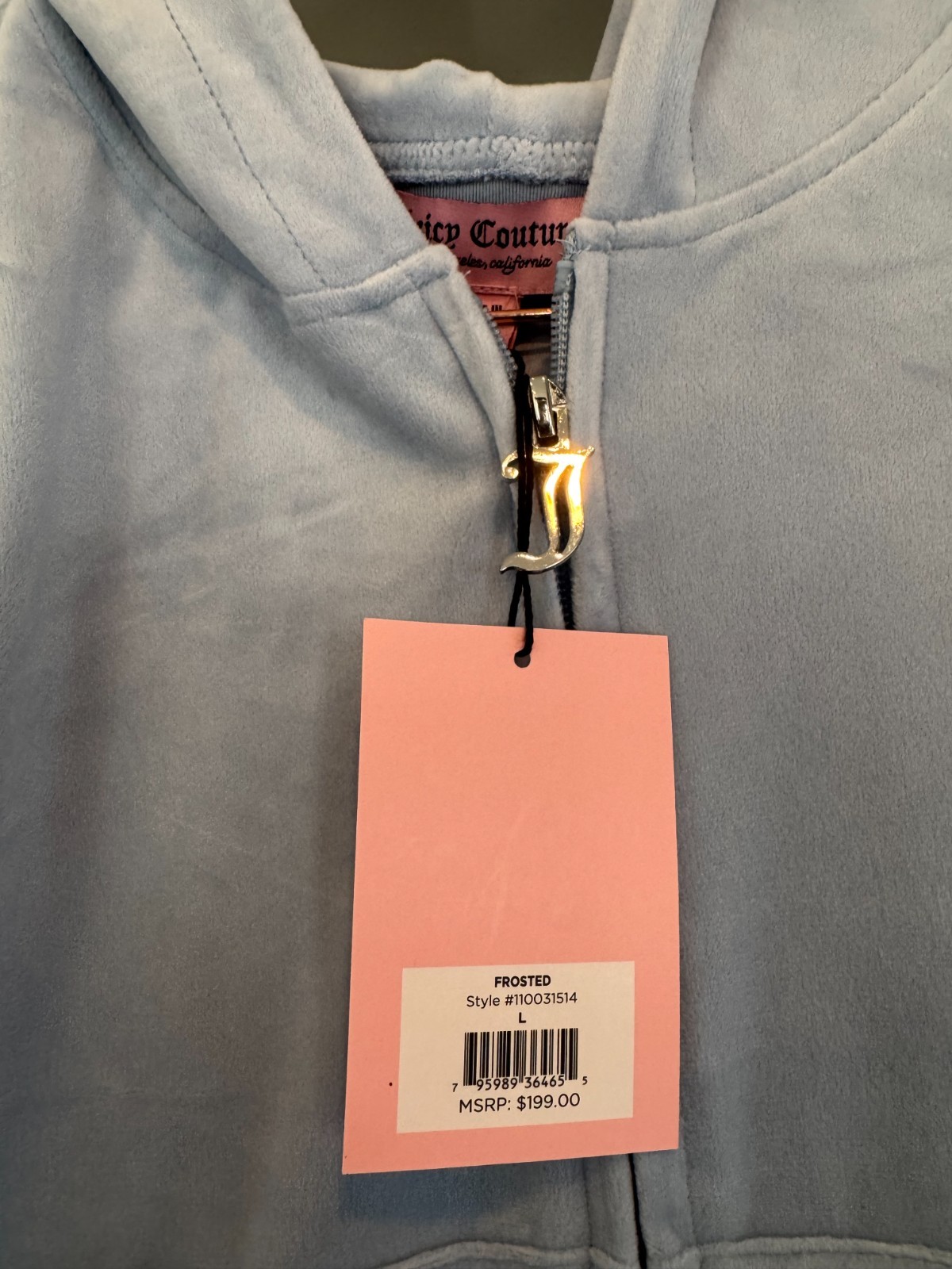 JUICY COUTURE Velour OG Bling Tracksuit Hoodie Pant Set Frosted Size Large L NEW