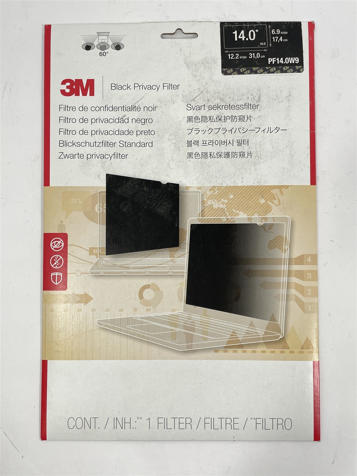 как выглядит Lot of 2 NEW Genuine 3M Black Privacy Filter for 14" Widescreen Laptop PF14.0W9 фото