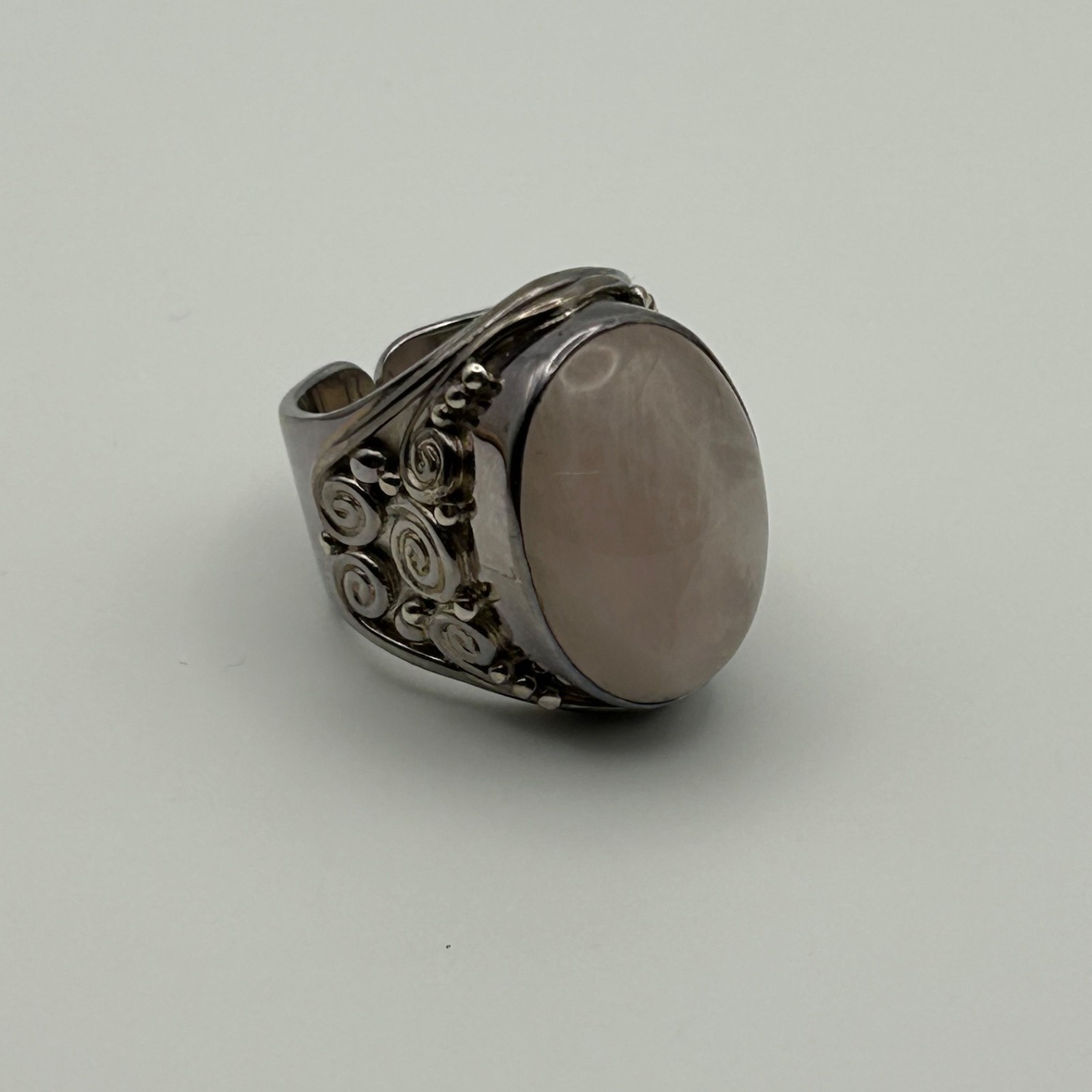 Sajen 925 Sterling Silver Rose Quartz Ring Large Oval Cabochon Adjustable Sz 5
