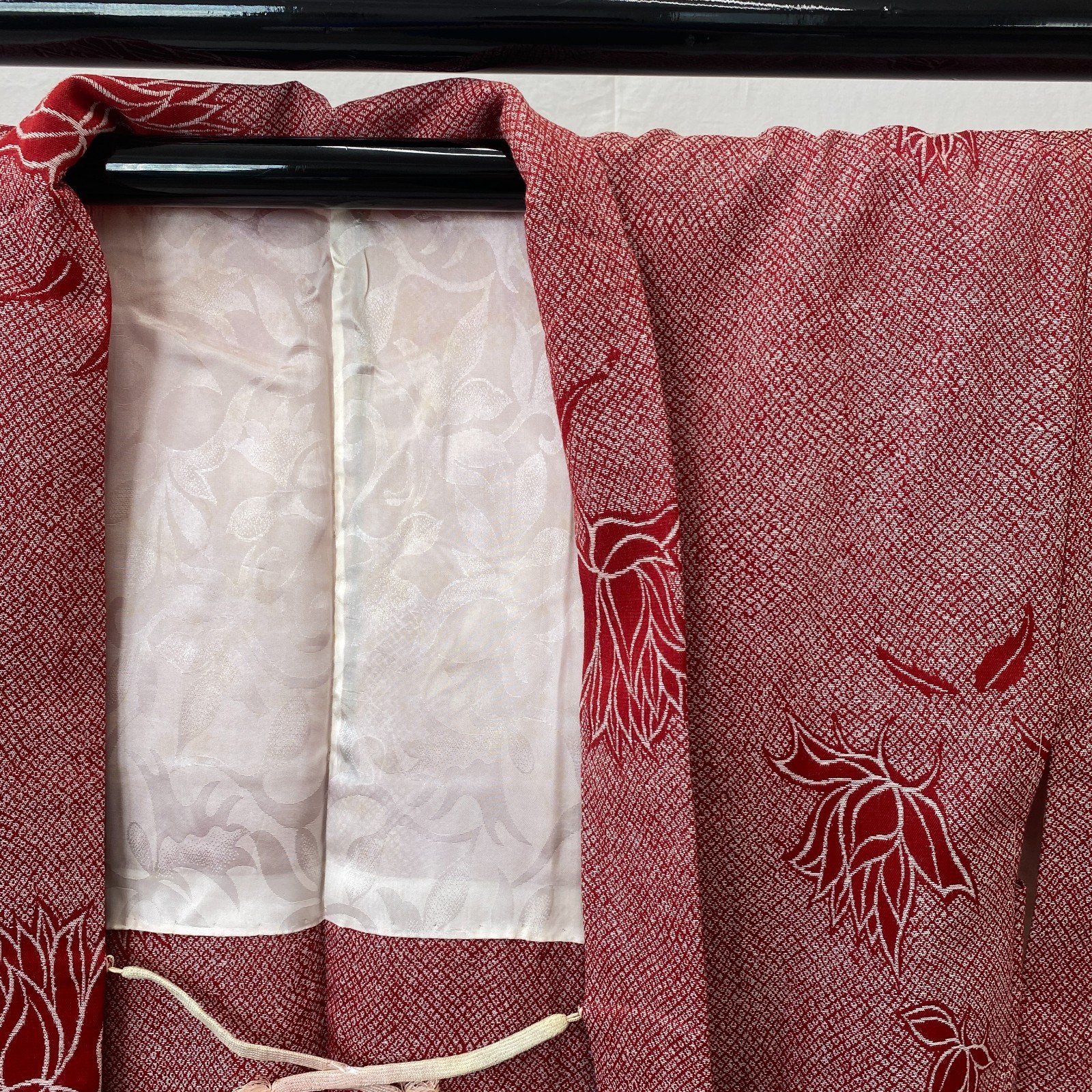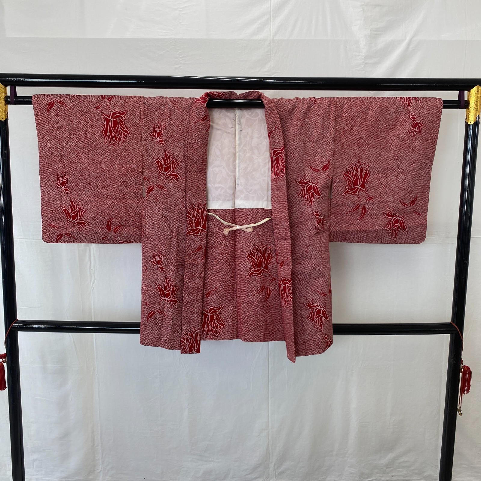 как выглядит Japanese Vintage Kimono Haori Jacket Cotton Red Traditional Authentic 32 in фото