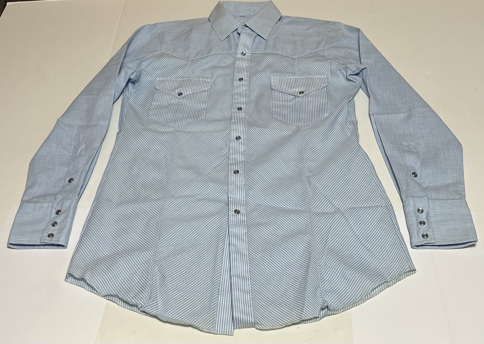 Vintage Miller Western Wear Shirt Mens 15-33 Blue Pearl Snap Cowboy USA Striped