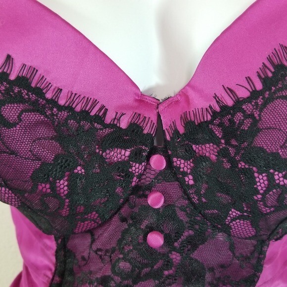 как выглядит Cacique magenta pink black lace corset bustier plus 18/20 фото