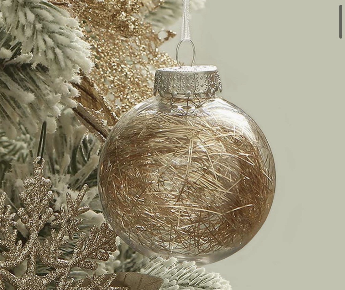 24 Pack Clear Shatterproof Christmas Ornaments Stuffed w/ Gold Tinsel, Baubles