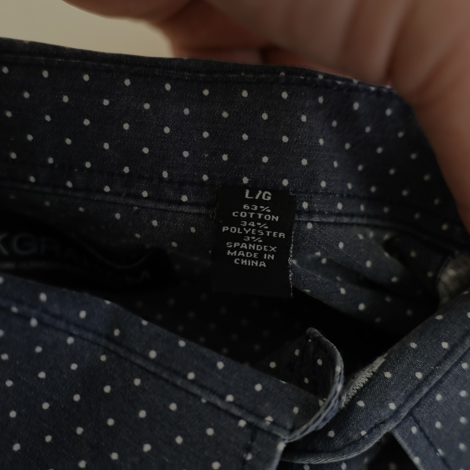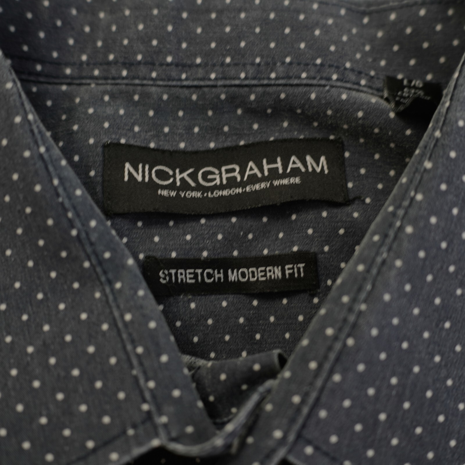 DAMAGED Nick Graham Stretch Modern Fit Blue Polka Dot Large Dress Shirt