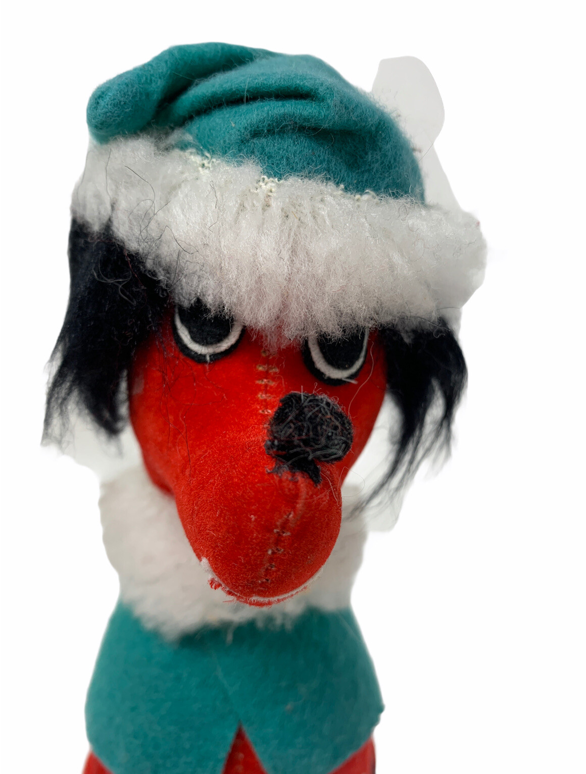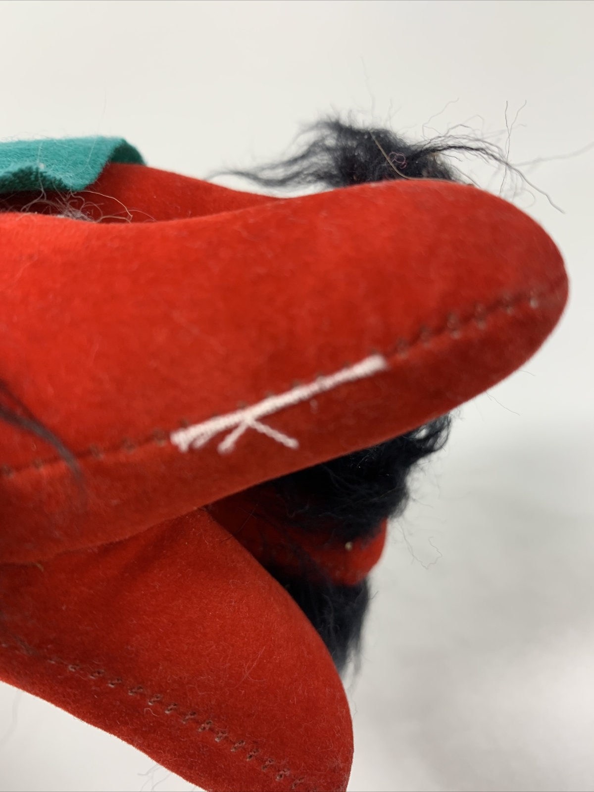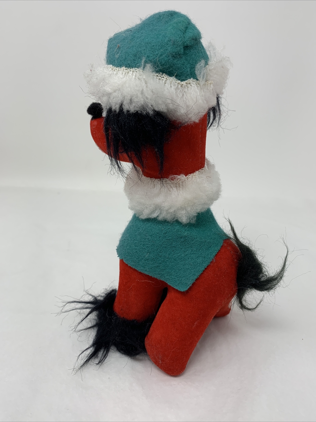 Vintage Dakin DREAM PETS 6 1/2 Red Dog Black Fur Santa Hat Sawdust Animal Toy