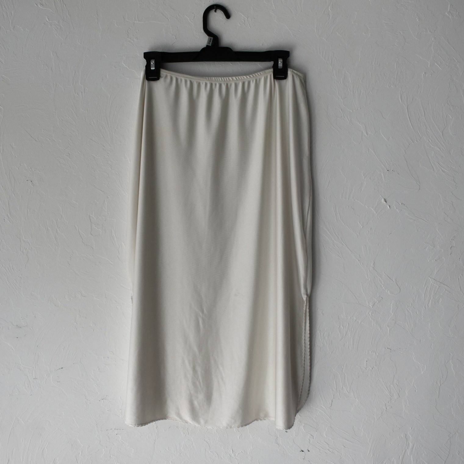 Women's Vintage Cream Full Nylon Lycra Blend Slip Skirt with Side Slit Size 10