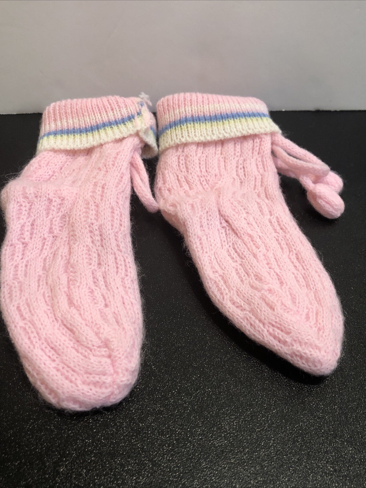 VTG Knitted Baby Toddler Doll Infant Booties Socks Pink Knit Socks Boy Girl
