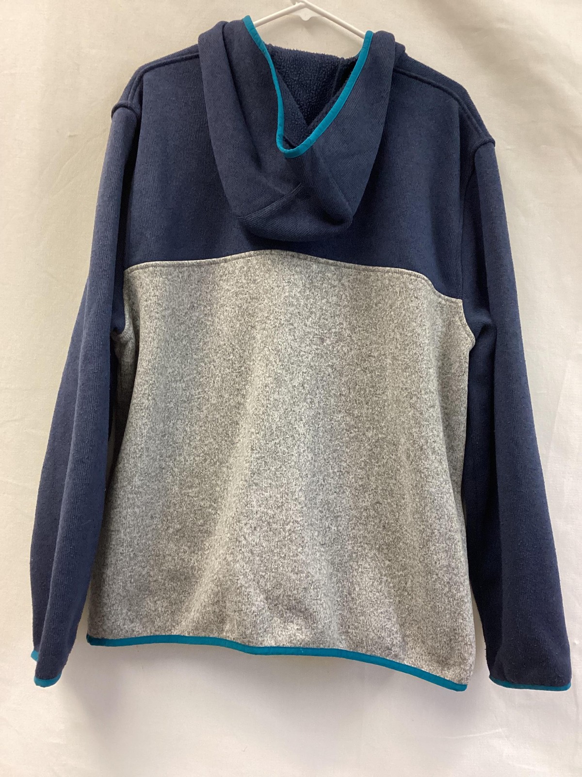 LL Bean Sweatshirt Mens XL Blue Gray Sweater Fleece Snap Hoodie Pullover Warm