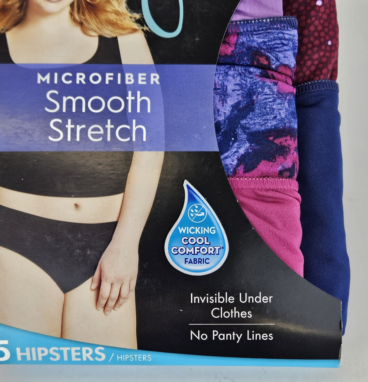 как выглядит JUST MY SIZE Womens Smooth Stretch Microfiber Hipster Panty 5-Pack - Size 14 фото
