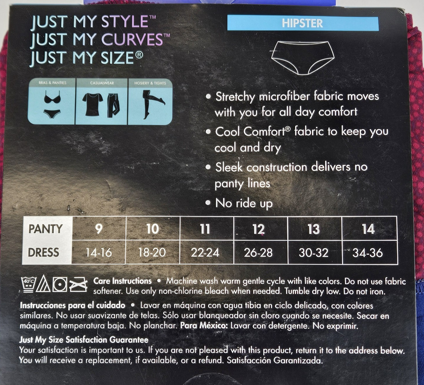JUST MY SIZE Women's Smooth Stretch Microfiber Hipster Panty 5-Pack - Size 14