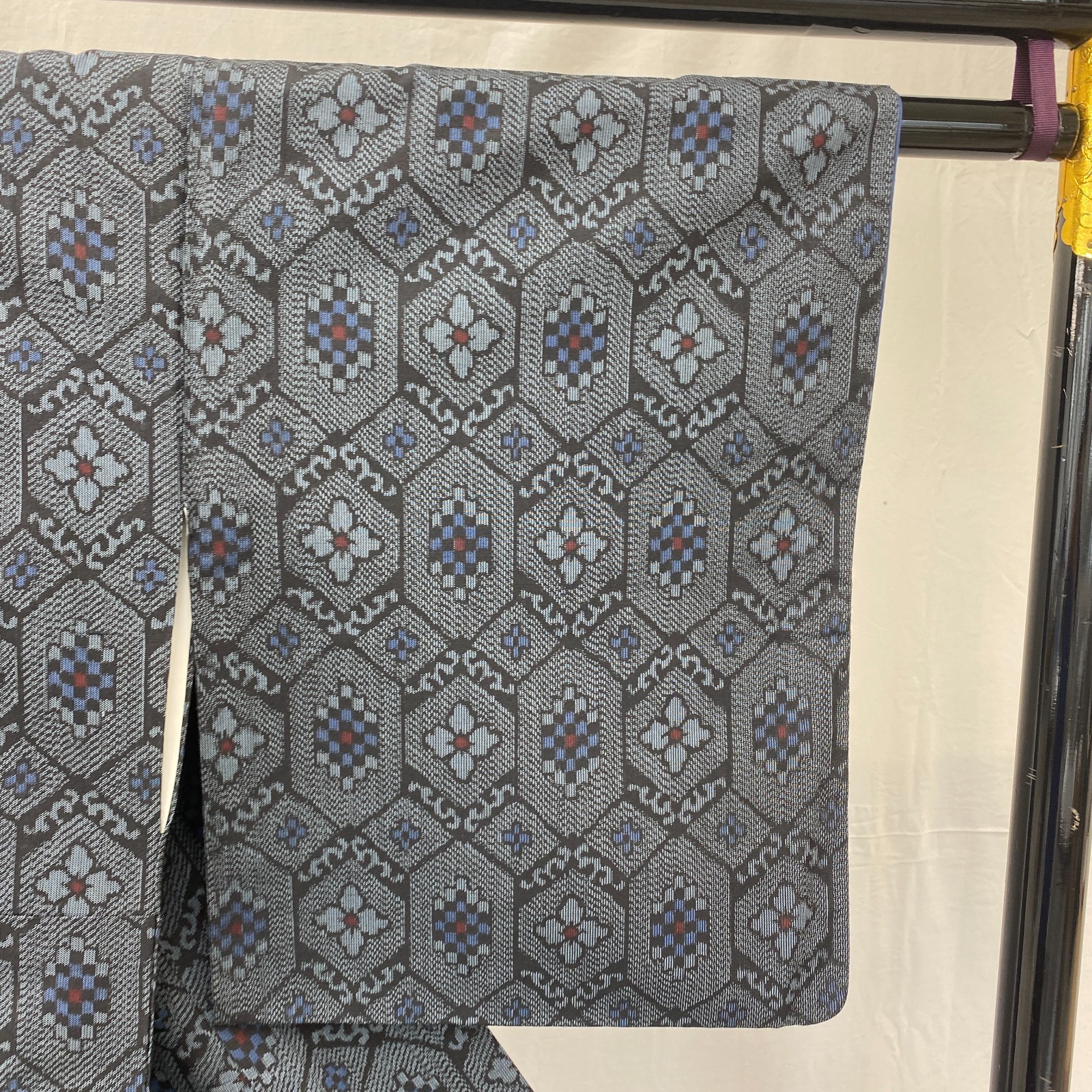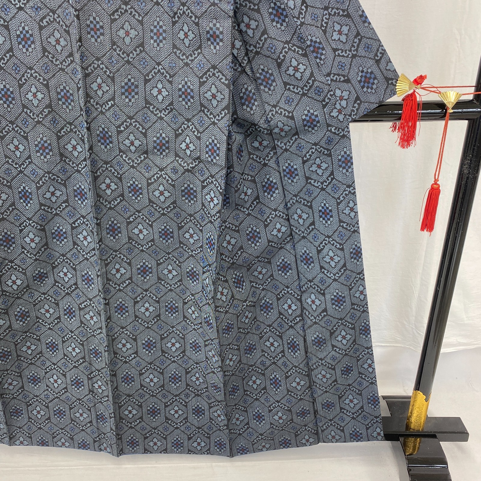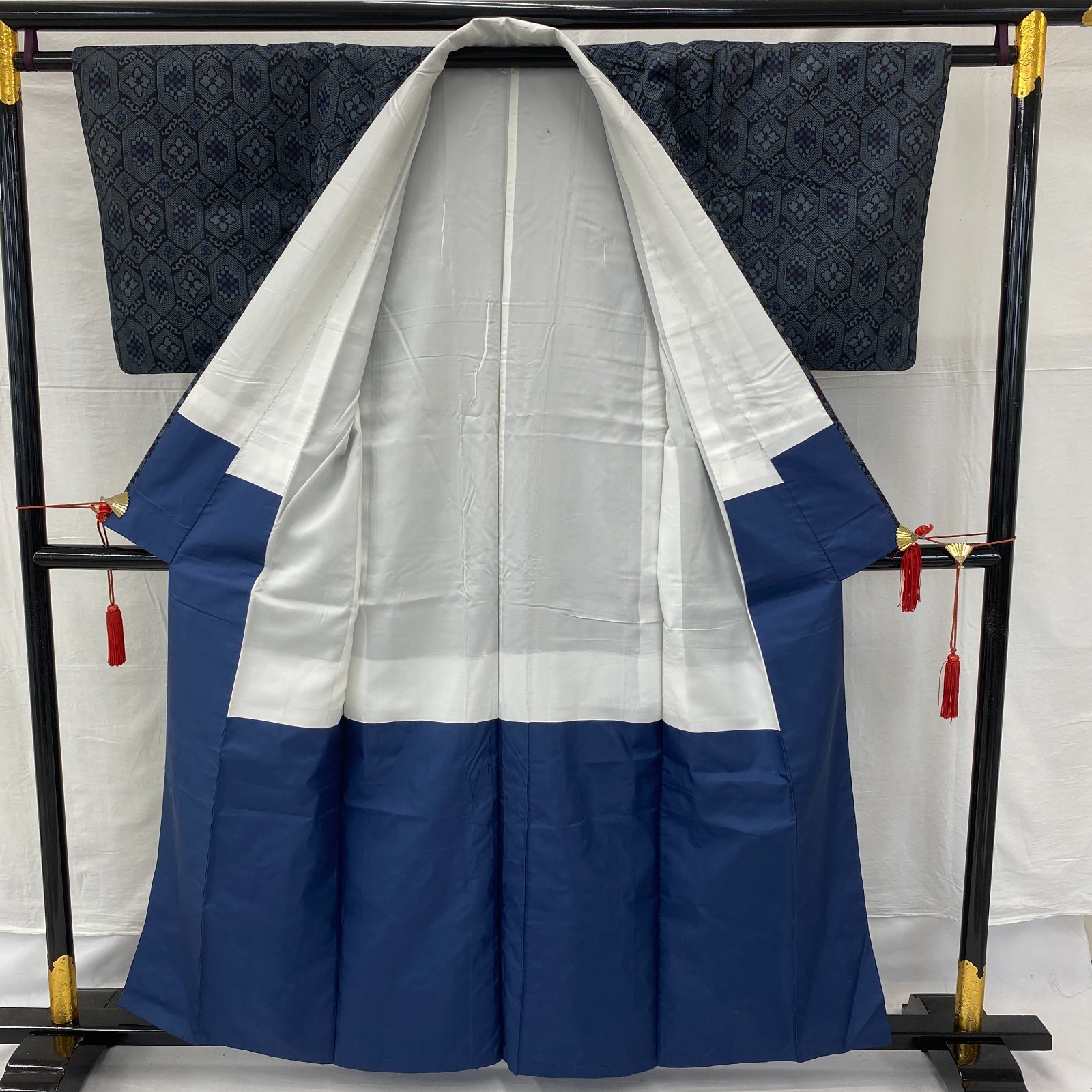 как выглядит Japanese Vintage Kimono Silk Navy Oshima Traditional Authentic Length 62 in фото