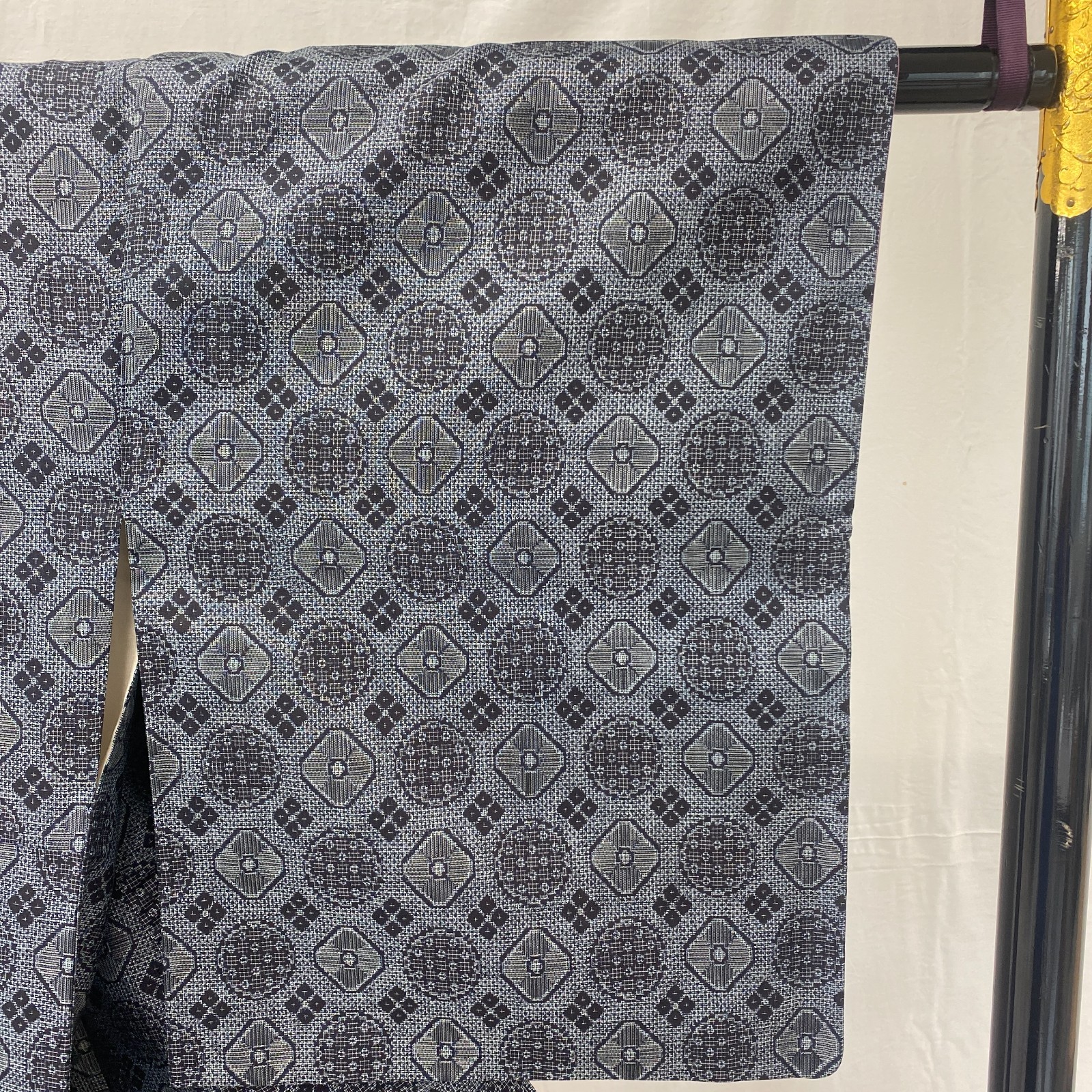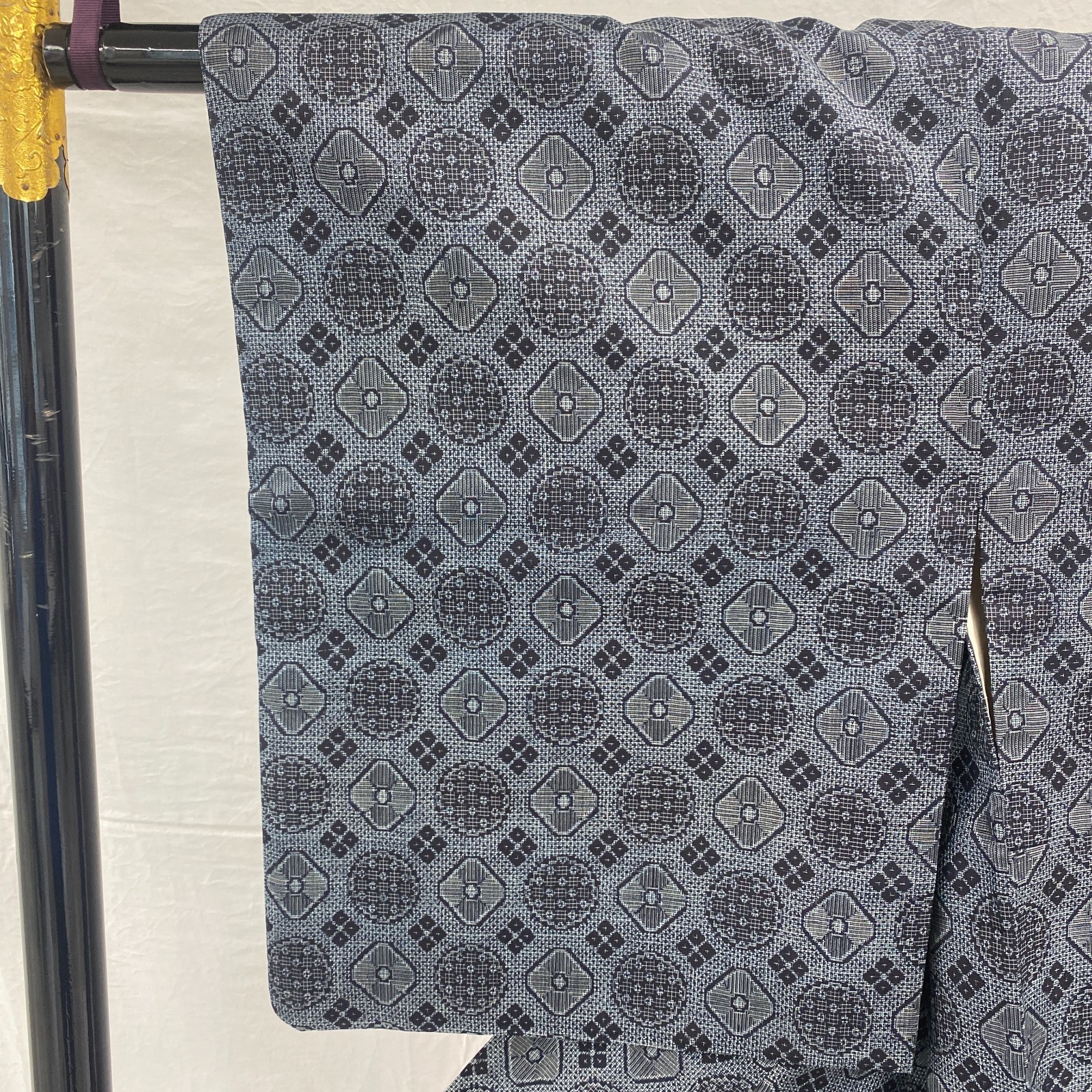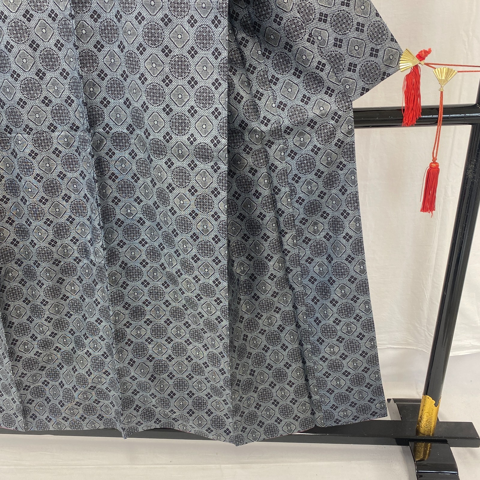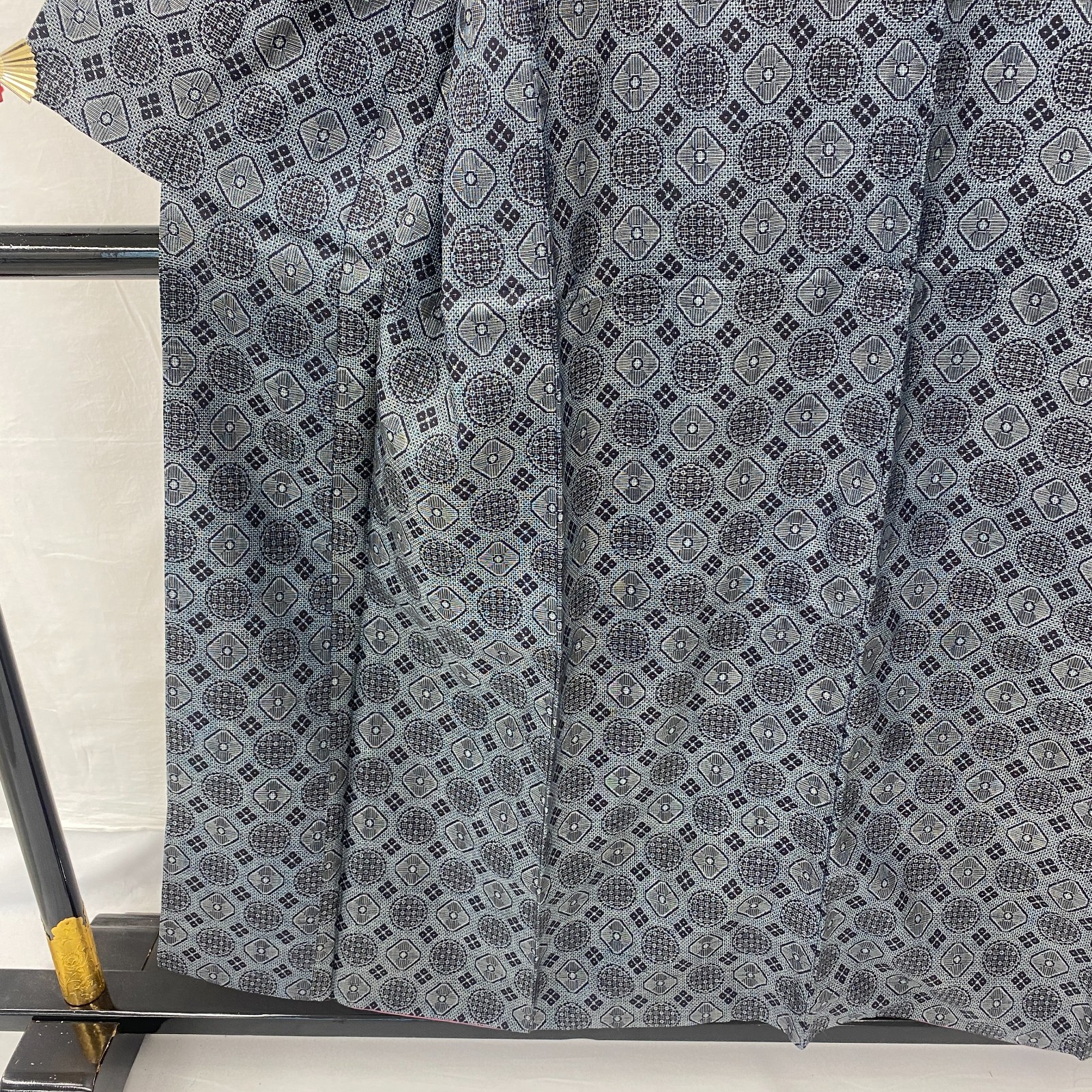 Japanese Vintage Kimono Silk Gray Oshima Traditional Authentic Length 60 in