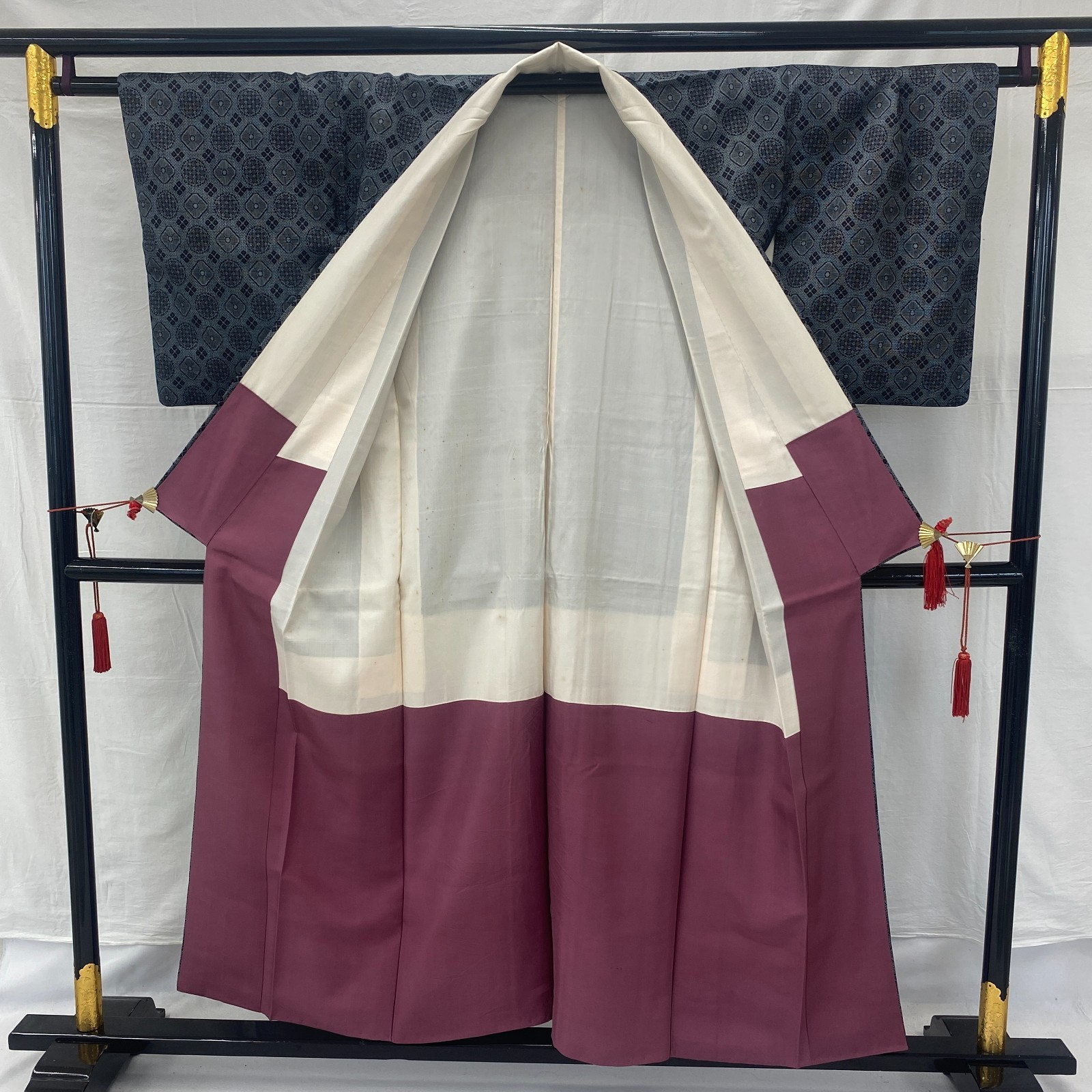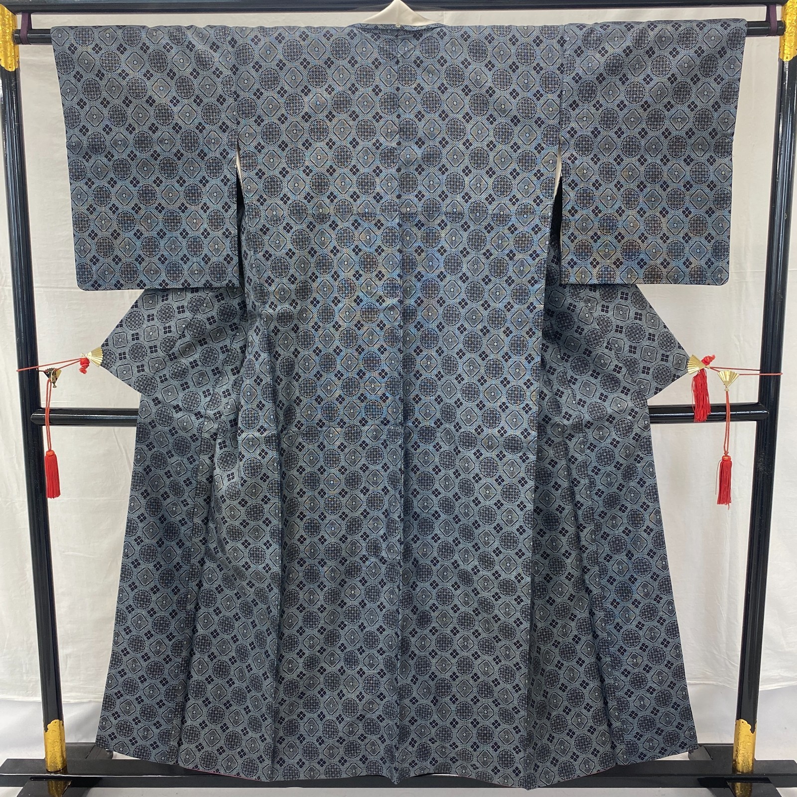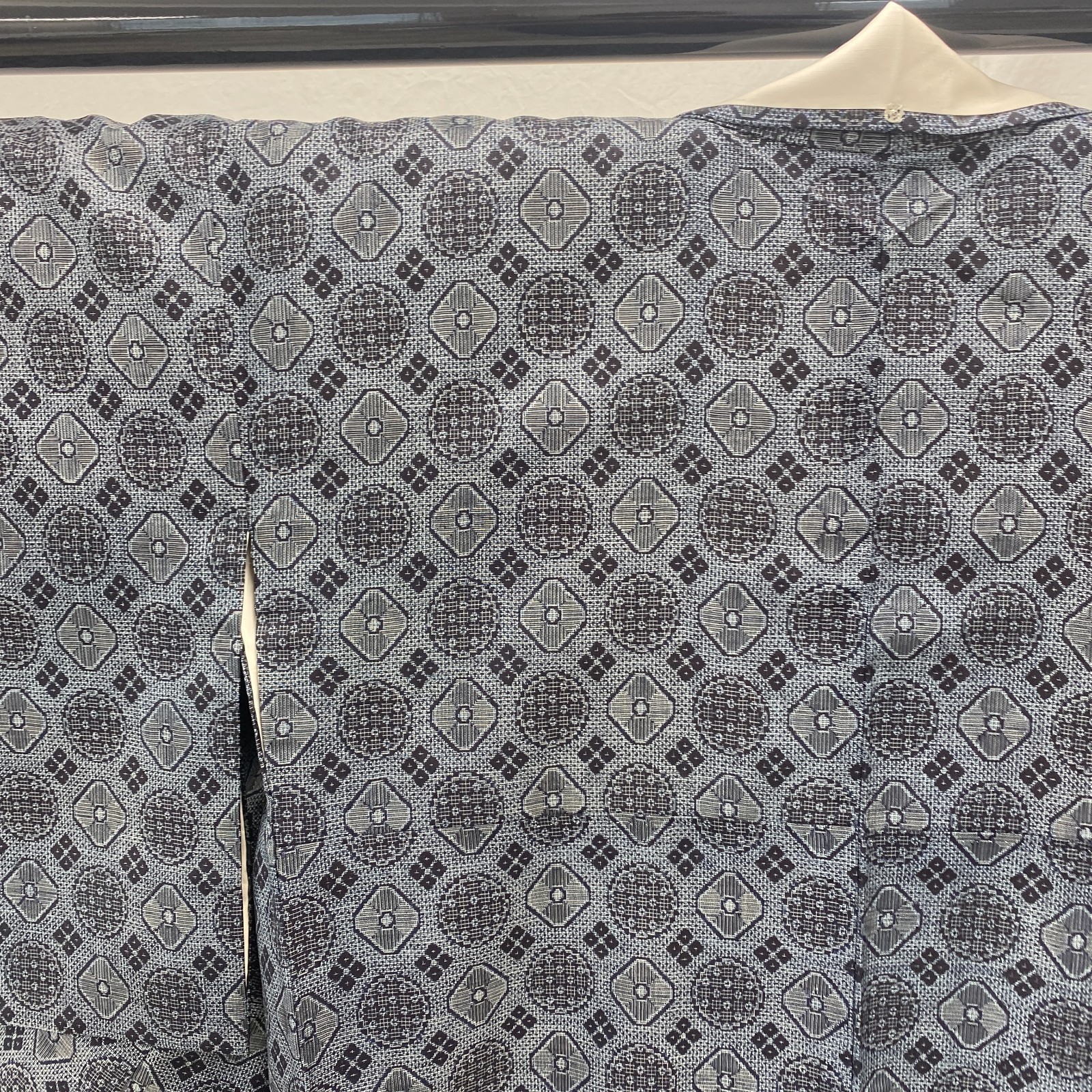 Japanese Vintage Kimono Silk Gray Oshima Traditional Authentic Length 60 in