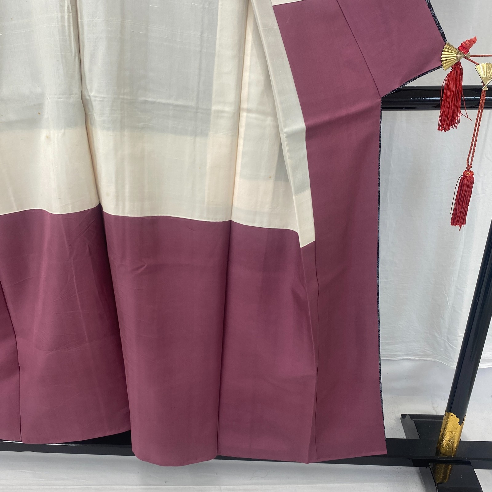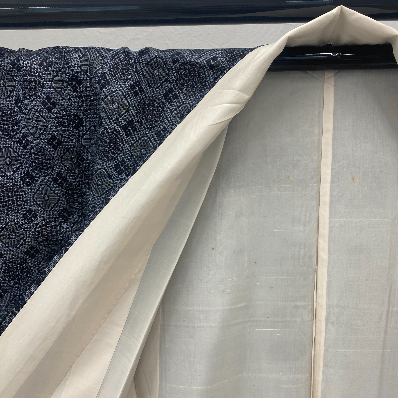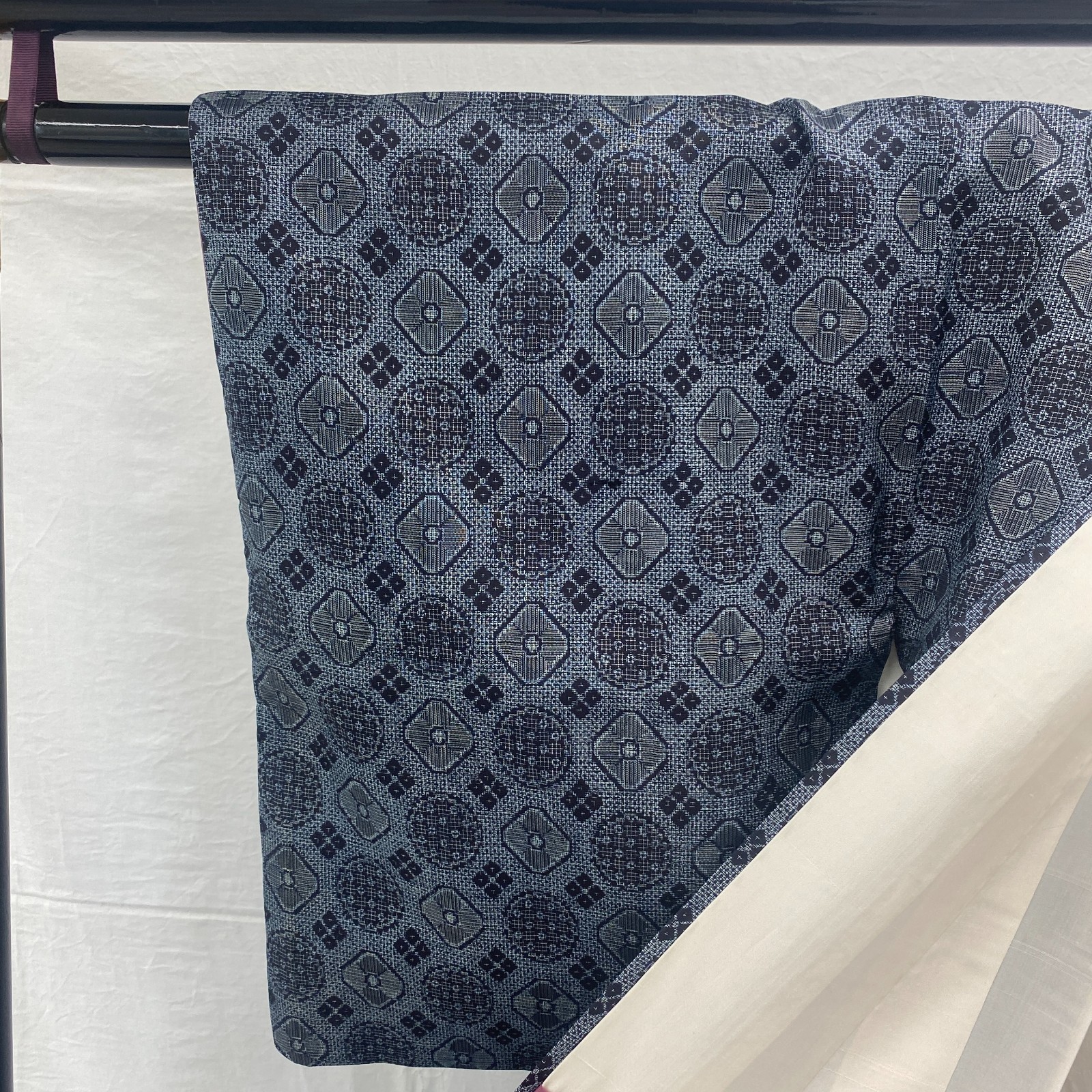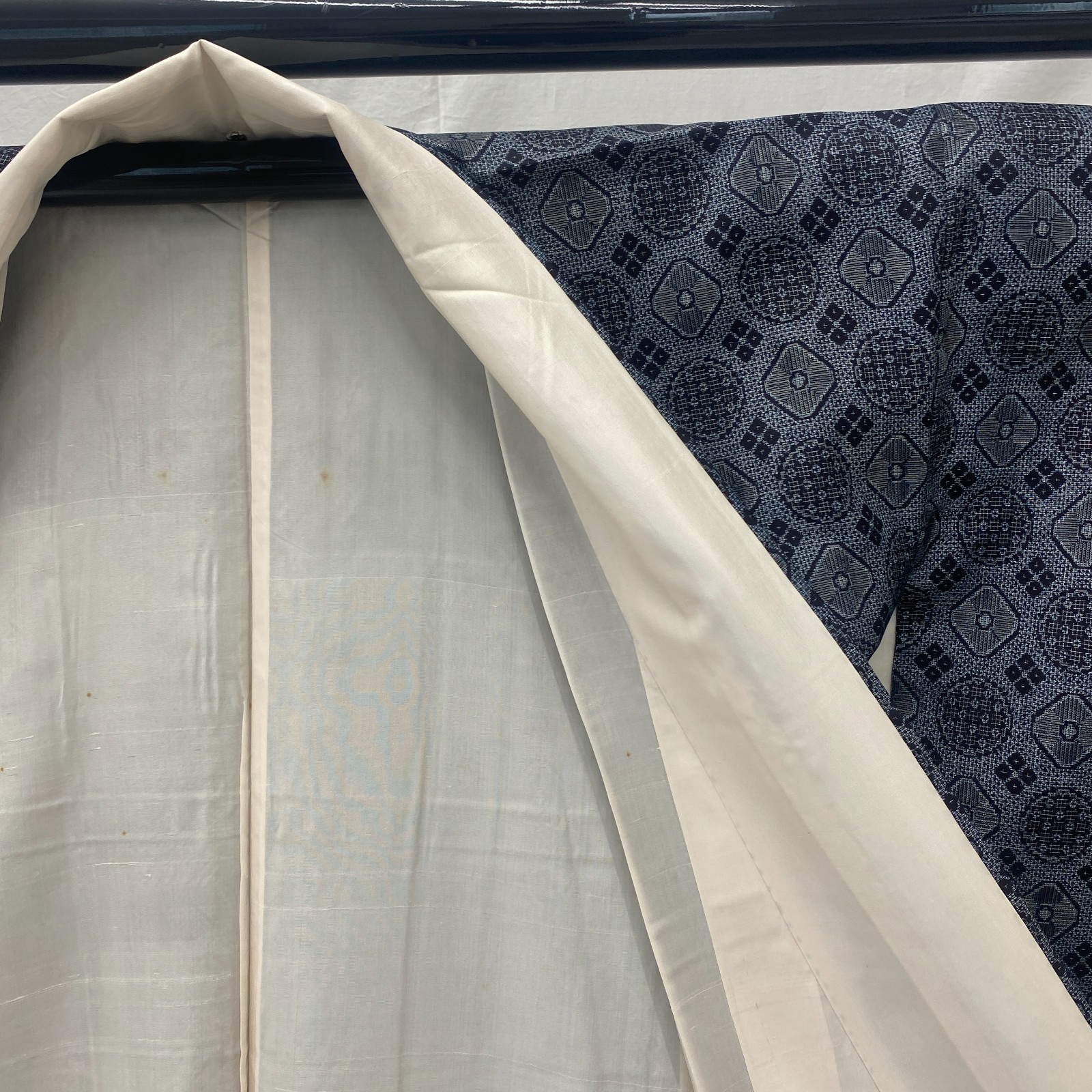 Japanese Vintage Kimono Silk Gray Oshima Traditional Authentic Length 60 in