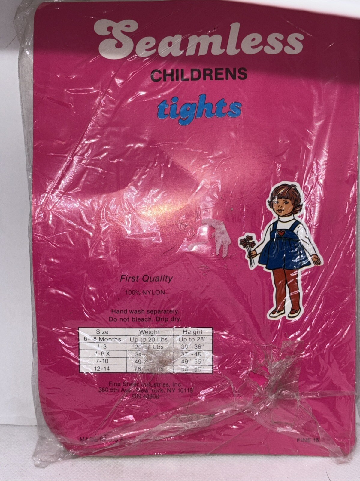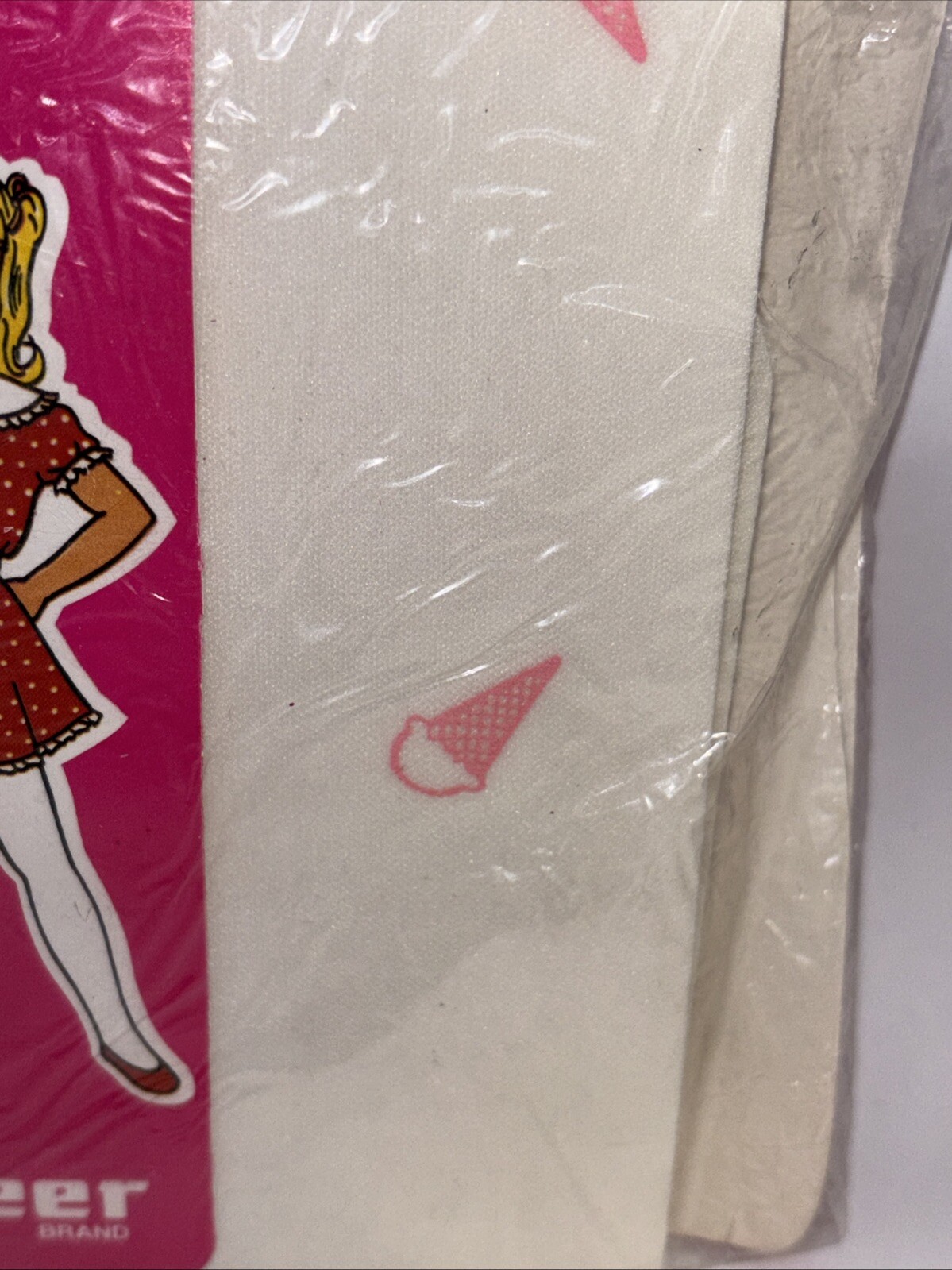 Vintage Children s Tights Fine Sheer Brand White With Pink Ice Cream Size 1-3