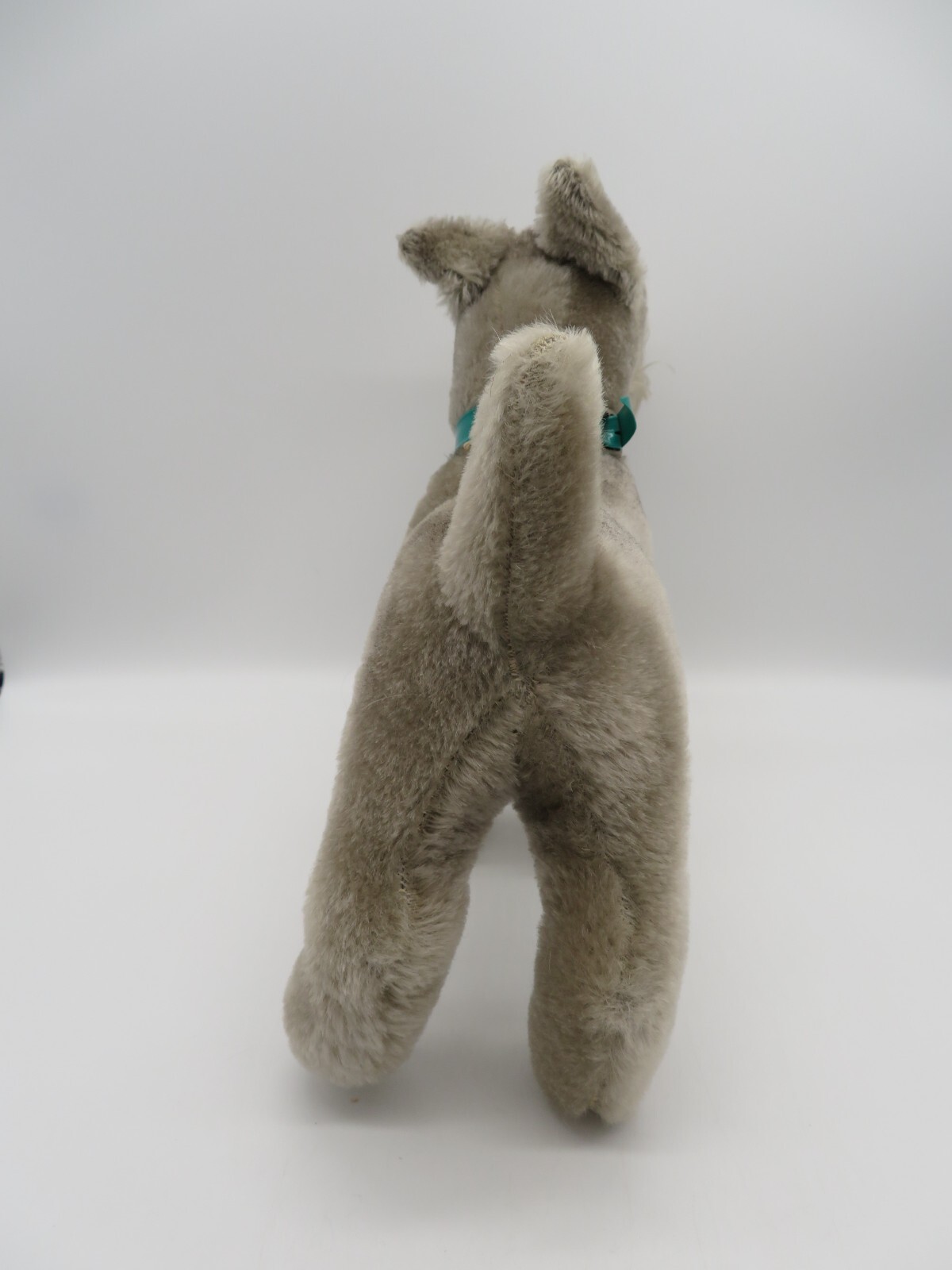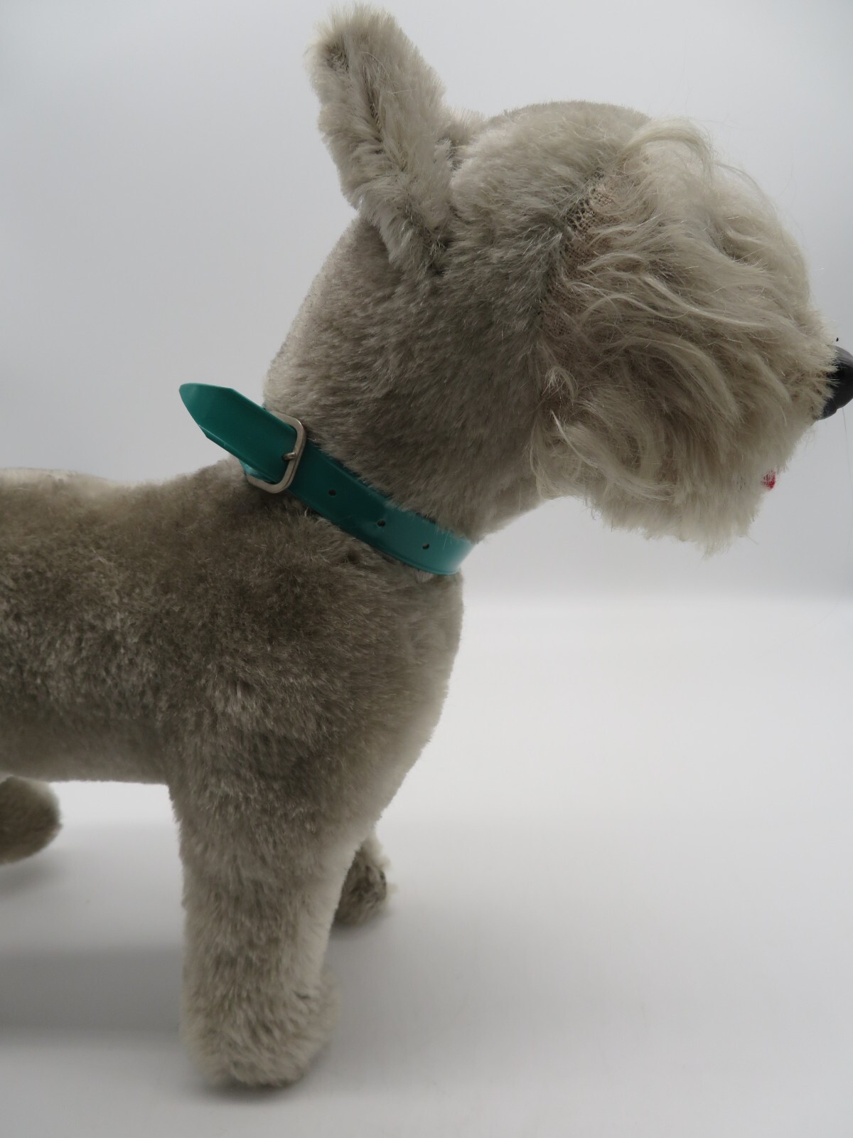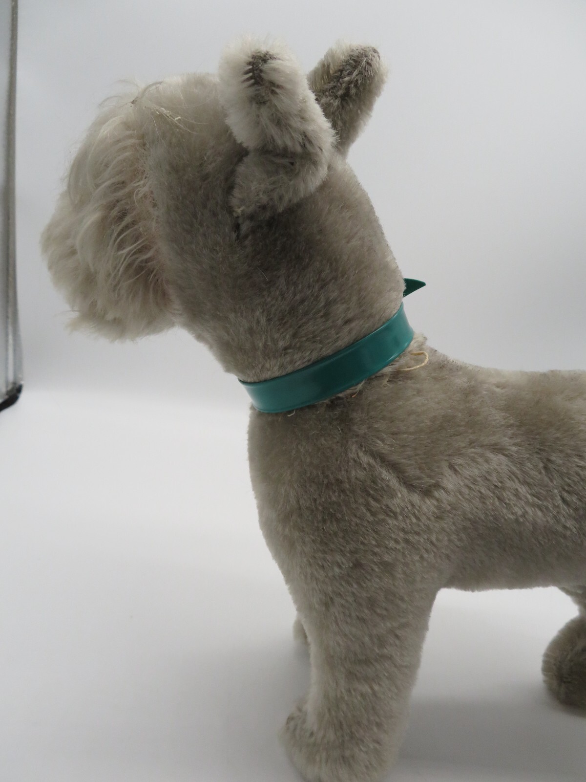 Vintage Steiff Mohair Schnauzer Dog w/Green Collar Late 50's-Early 60s VERY RARE
