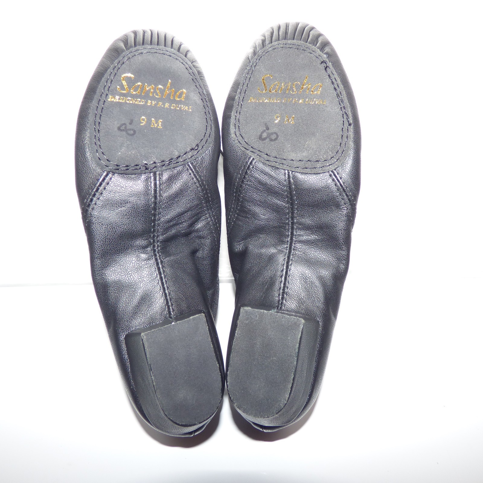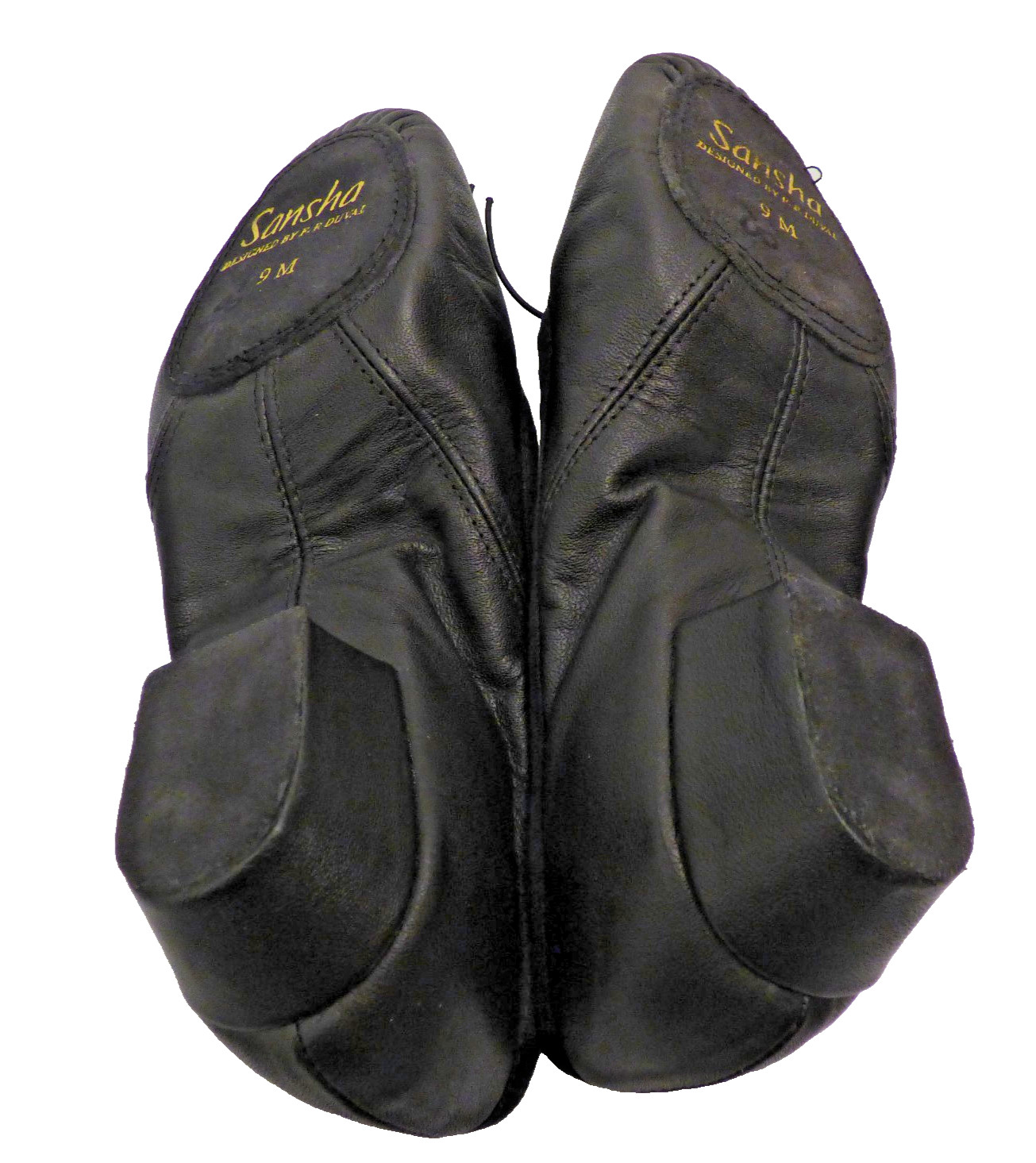 NWOB SANSHA PRIMA BLACK LEATHER TEACHING SHOES SUEDE HEELS SOLES 9M Runs Small