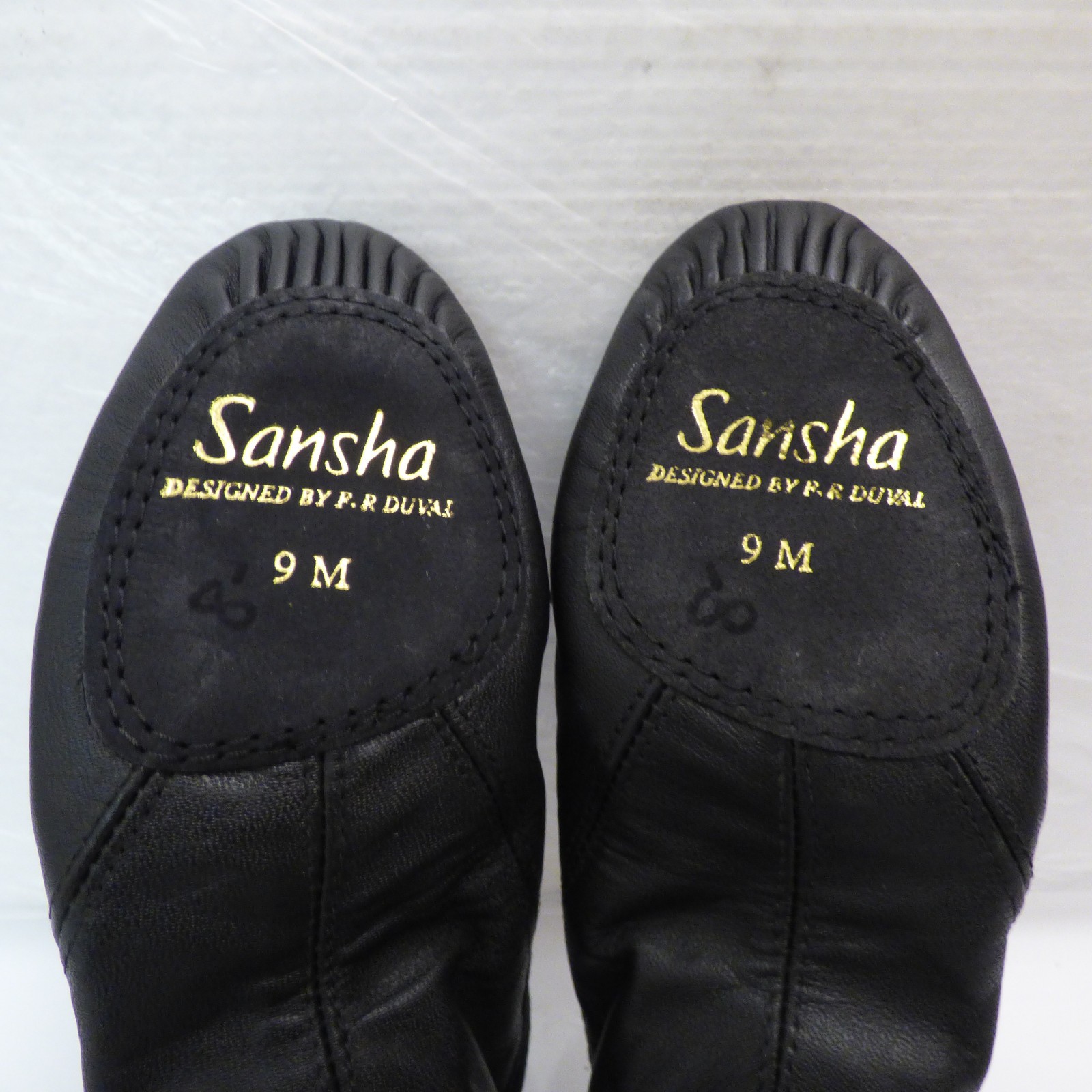 как выглядит NWOB SANSHA PRIMA BLACK LEATHER TEACHING SHOES SUEDE HEELS SOLES 9M Runs Small фото