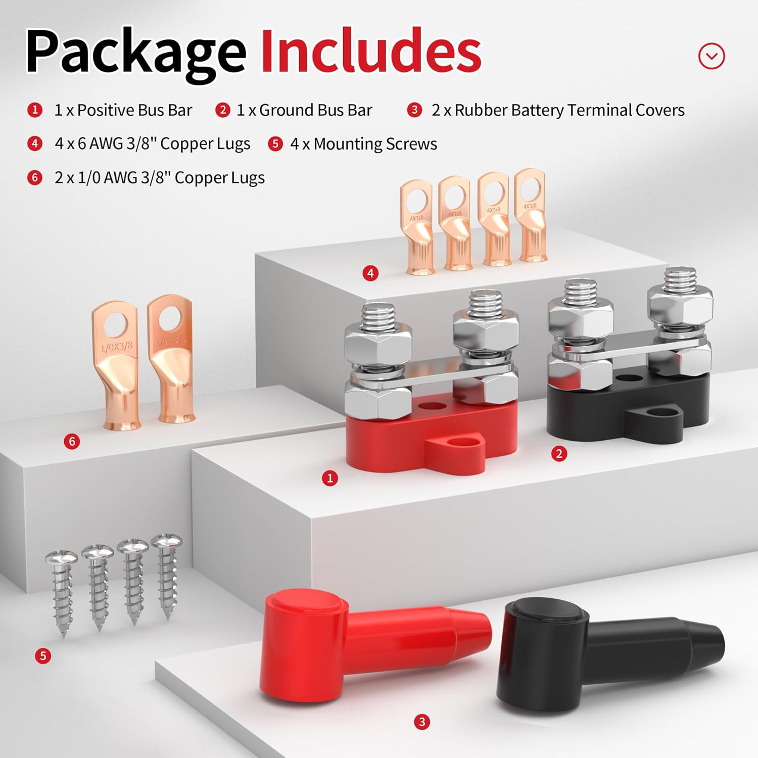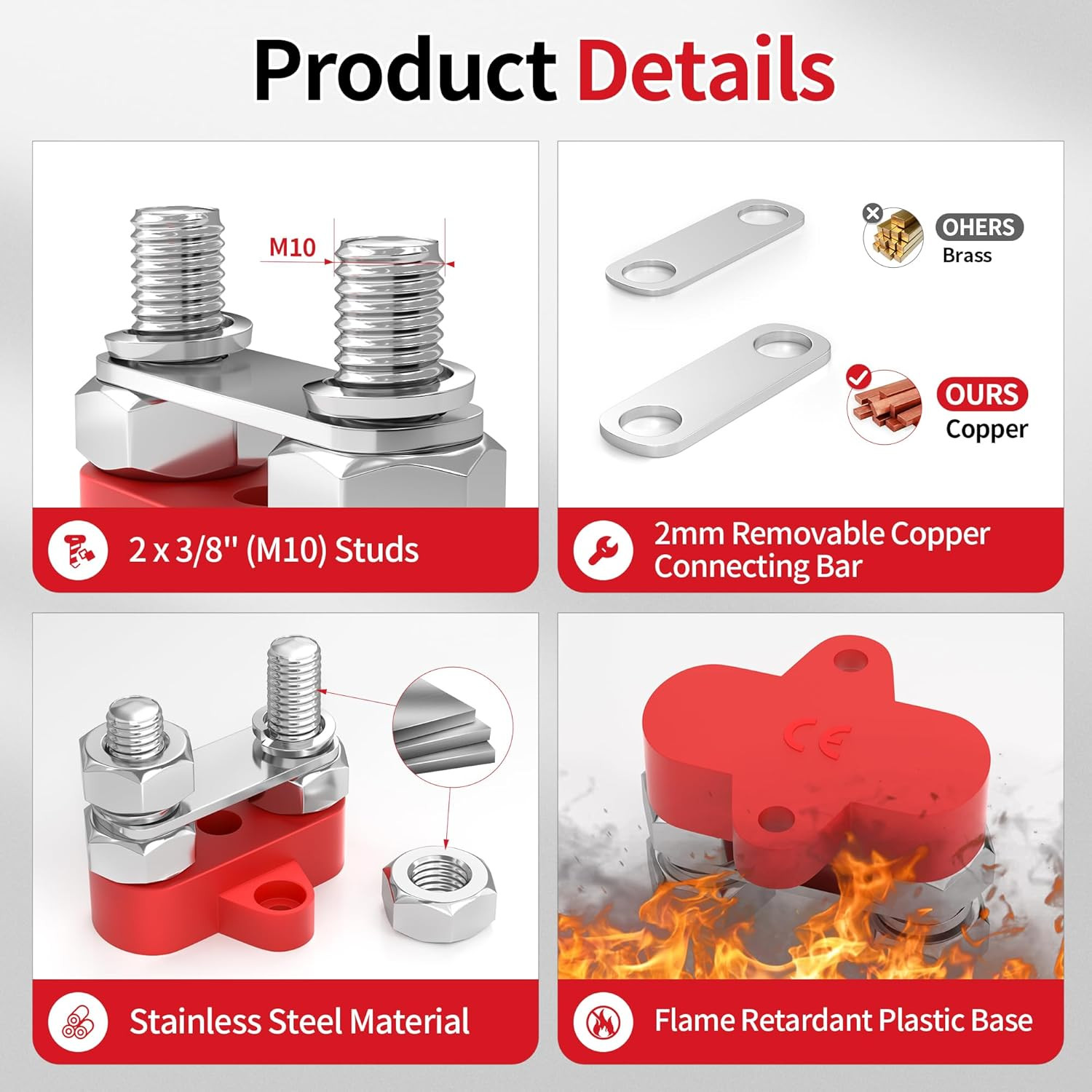 Joinfworld Bus Bar 12V 250A Power Distribution Block Dual 3/8 Studs Marine