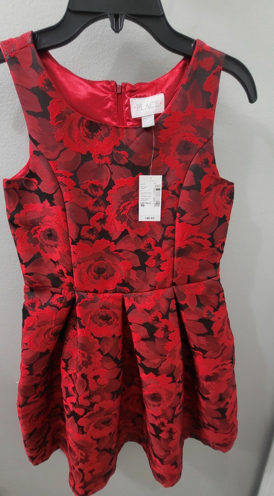 NWT Girls 6/7 Christmas Holiday Red Black Jacquard Dress The Children's Place