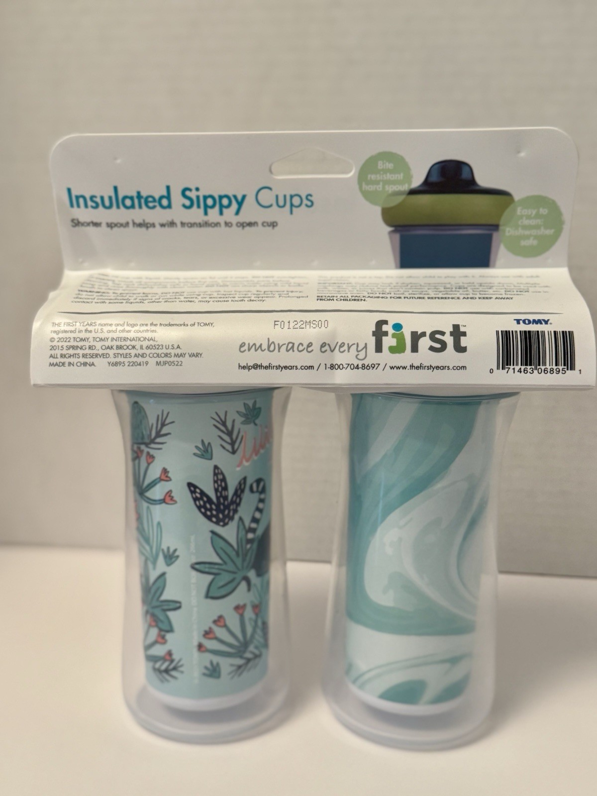The First Years Insulated Sippy Cups 2 Pack 9oz BPA Free Spill Proof 12m NWT
