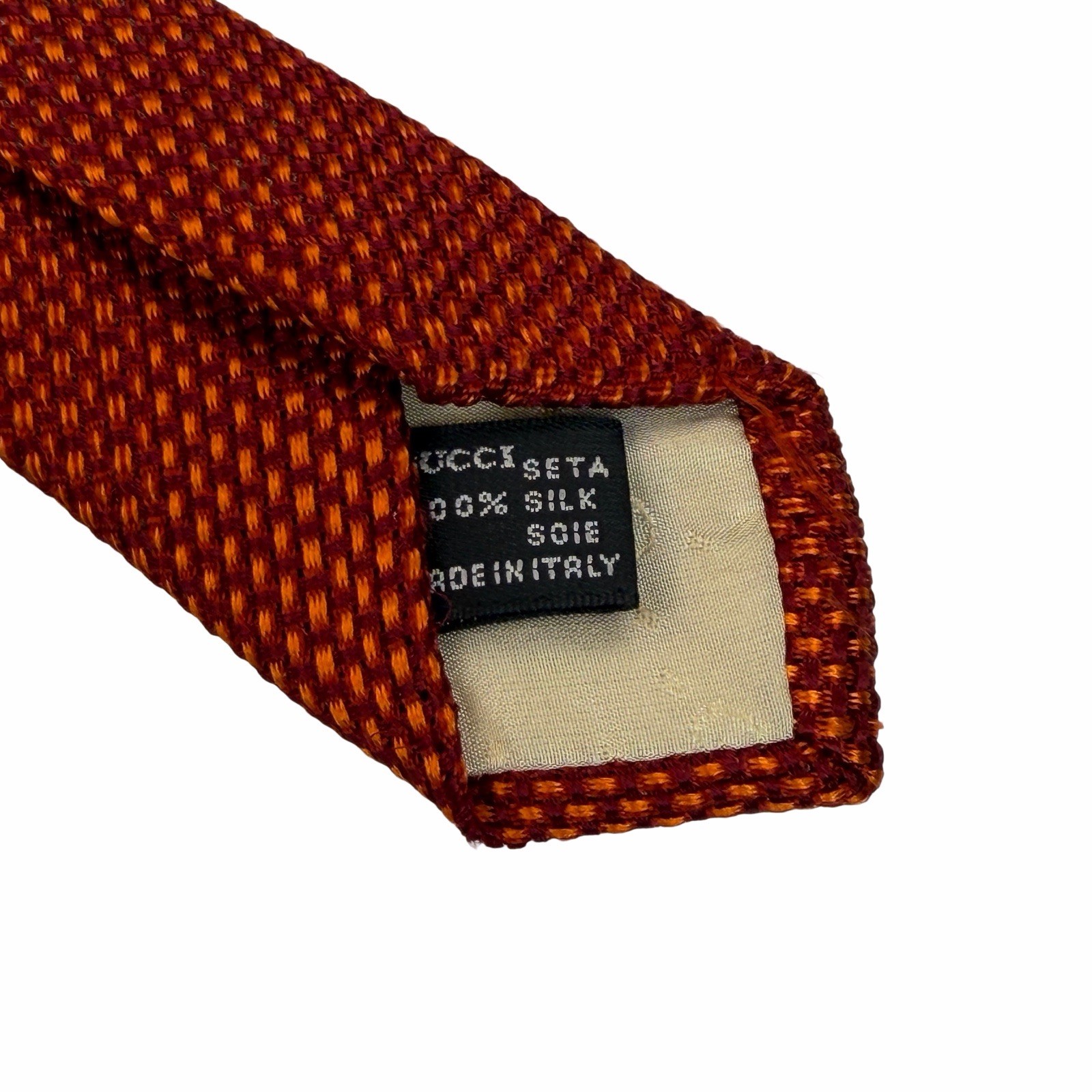 как выглядит GUCCI MADE IN ITALY DARK ORANGE-RED 100 SILK TIE KNIT 3.75 X 60 фото