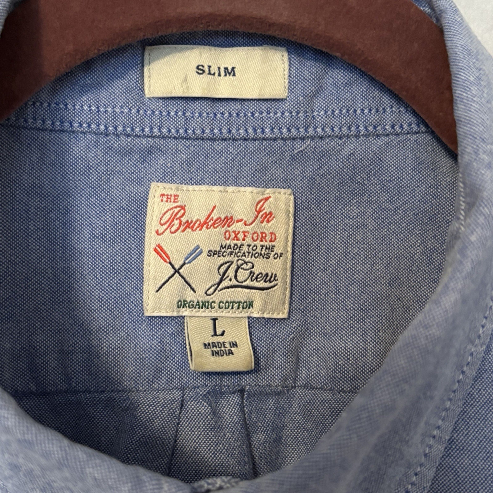 как выглядит J. Crew Broken-In Oxford Shirt Mens L Slim Fit Blue Short Sleeve Organic Cotton фото