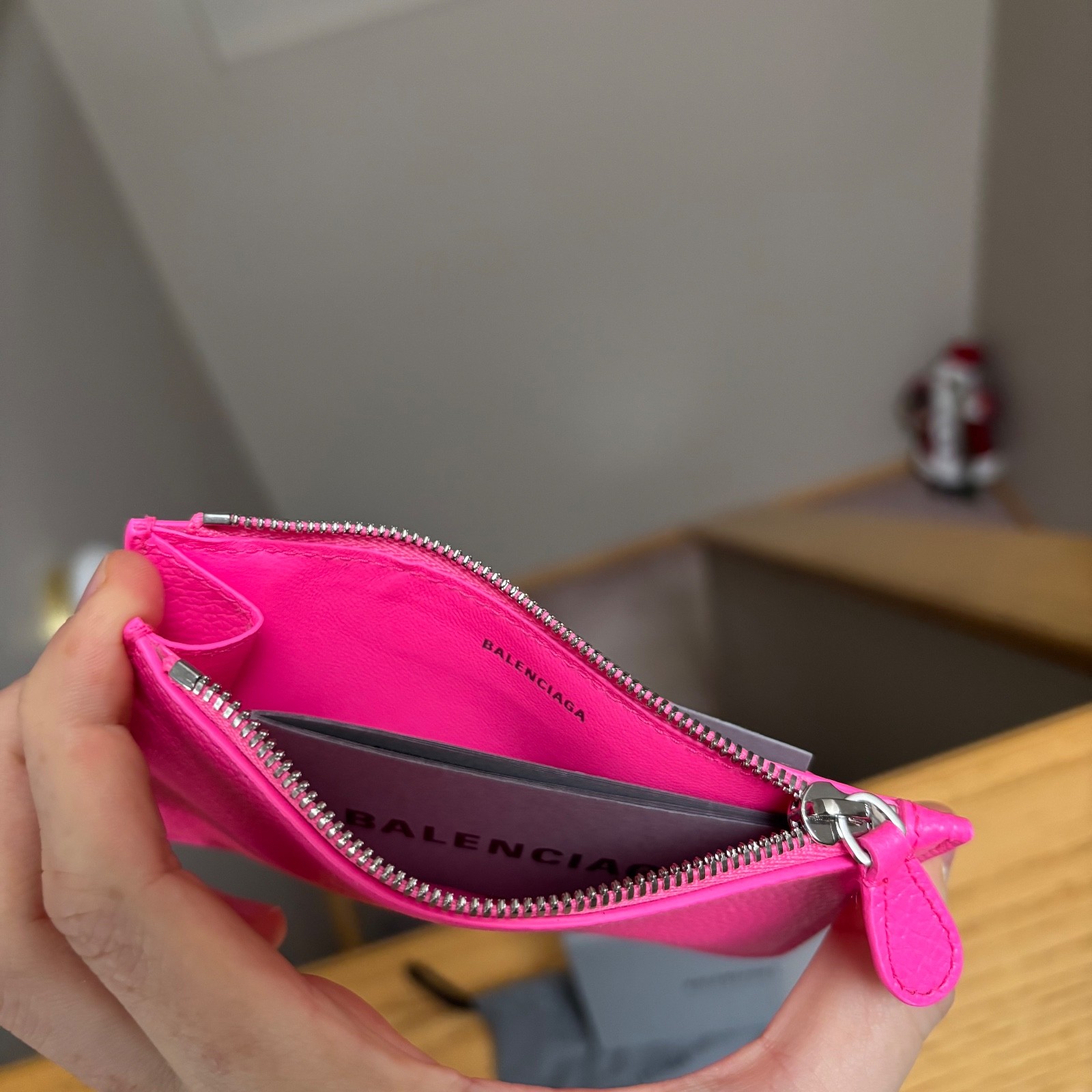как выглядит Balenciaga Hot Pink Zippered Leather Card Holder Case - Authentic - Brand New фото