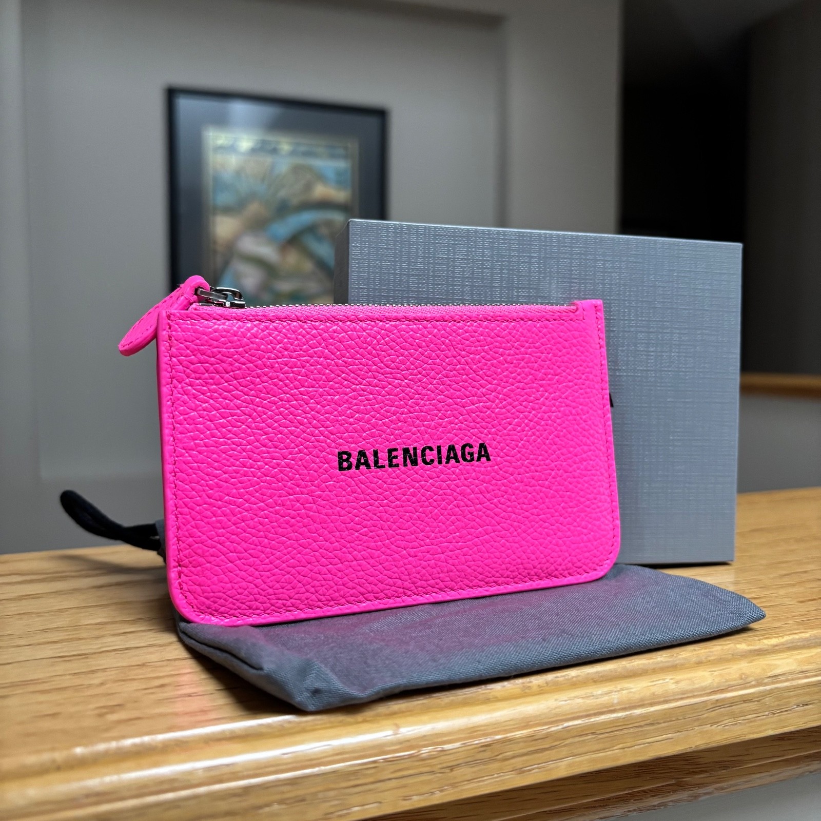 Balenciaga Hot Pink Zippered Leather Card Holder Case - Authentic - Brand New