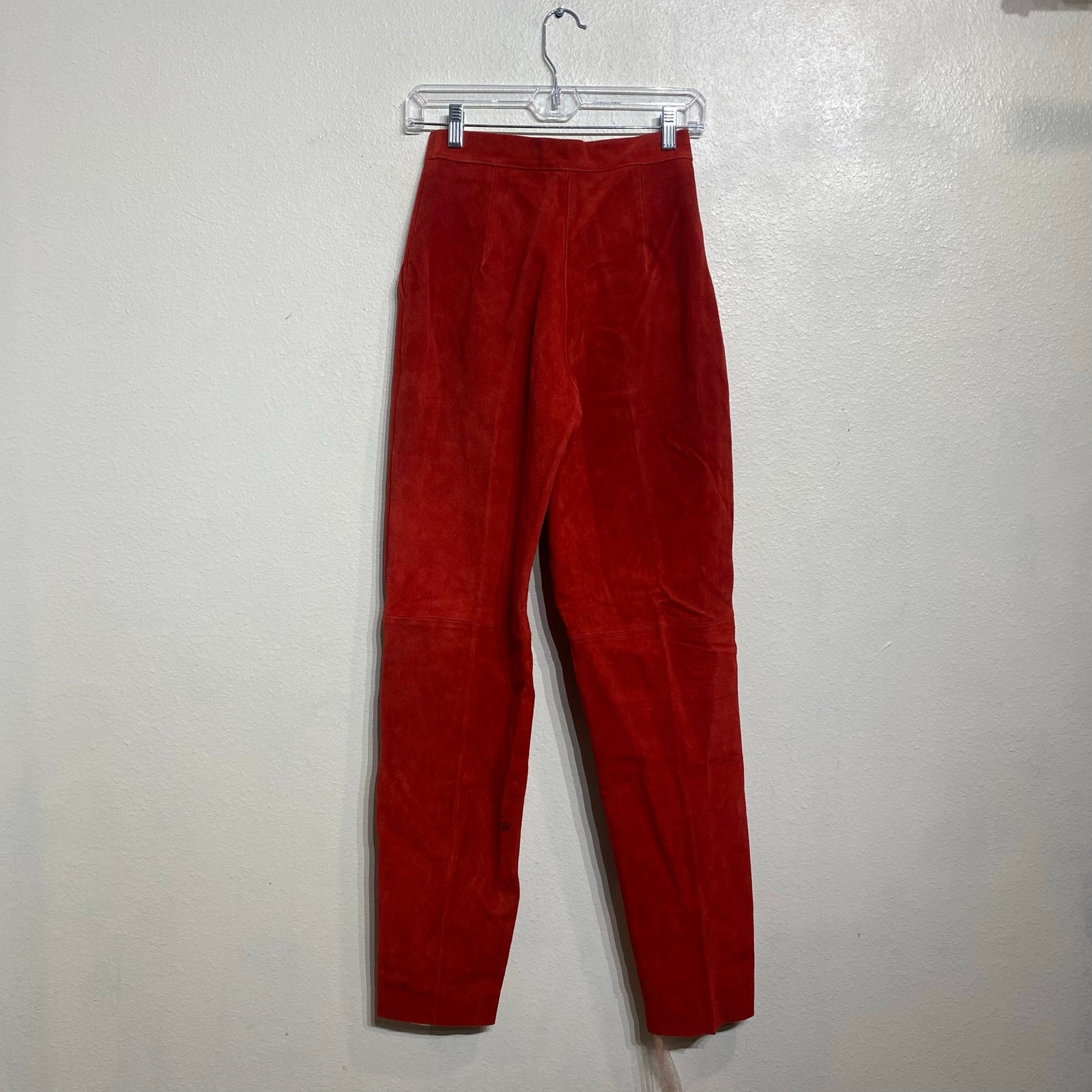 Fashion House Red High Waist Vintage Suede Leather Pants Sz 6