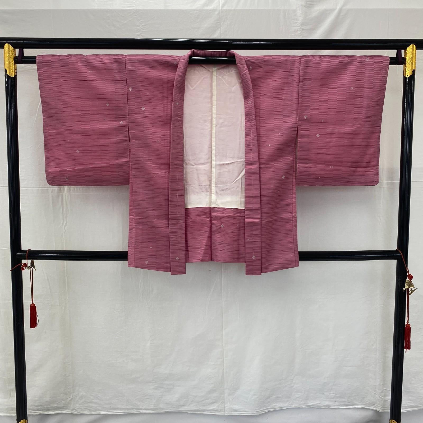 Japanese Vintage Kimono Haori Jacket Polyester Pink Traditional Authentic 31 in