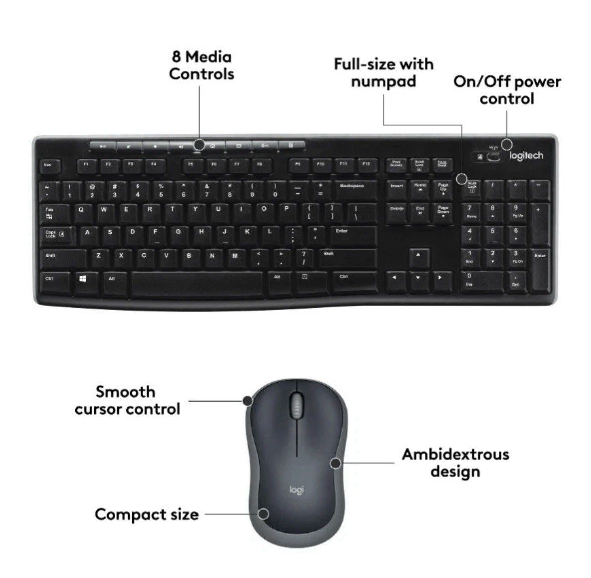 Logitech MK270 Wireless Combo Keyboard Mouse USB Black 920004536- New In Box