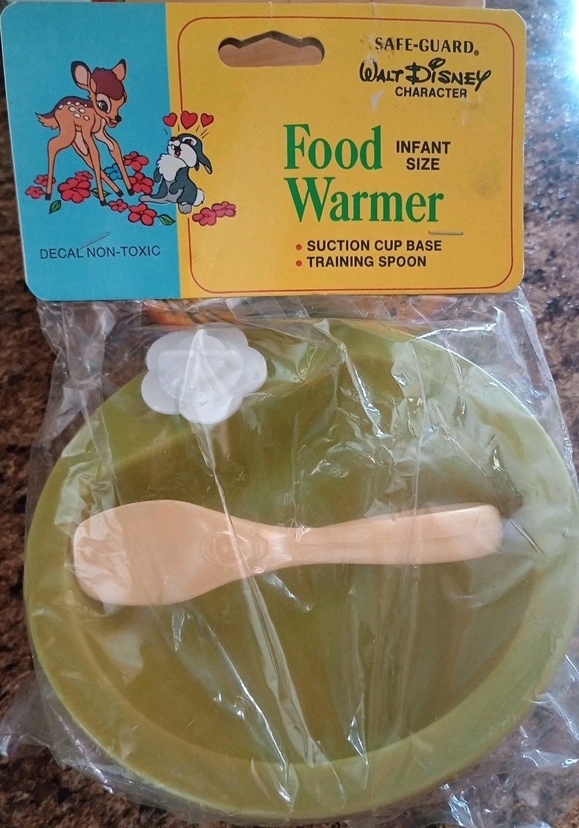 Vtg NEW WDW Bambi Food Warmer Infants Suction Cup Base W/Training Spoon 5 Bowl