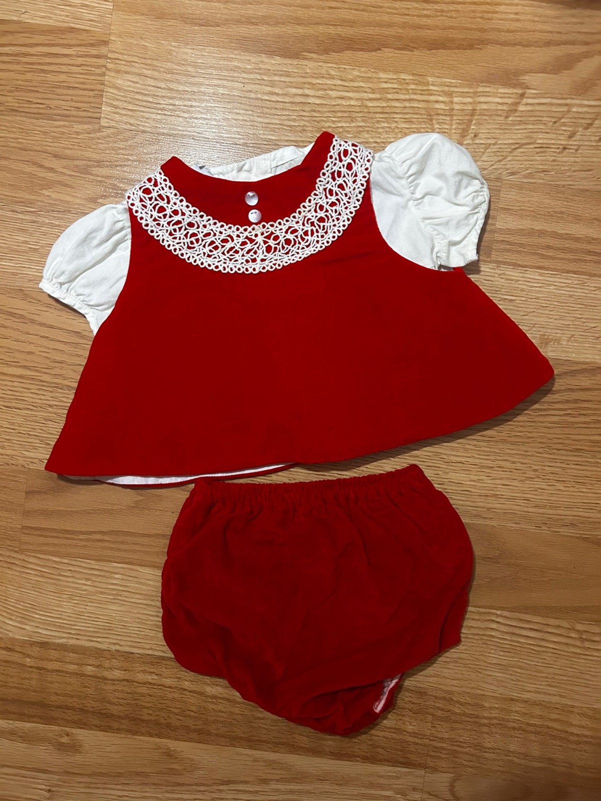 VTG Toddle Tyke Red Velvet Infant Dress Set w/lined diaper cover 11-18 Lbs