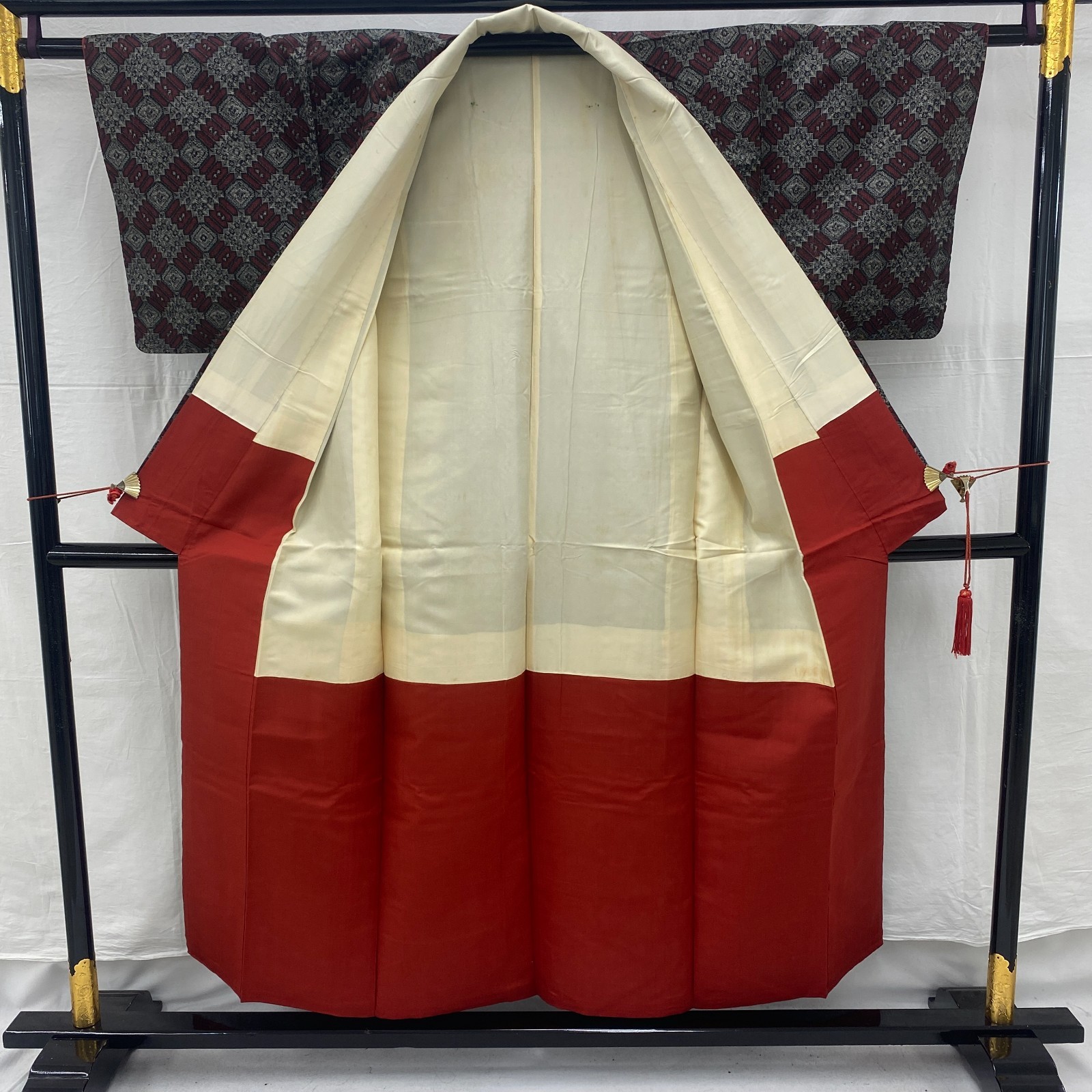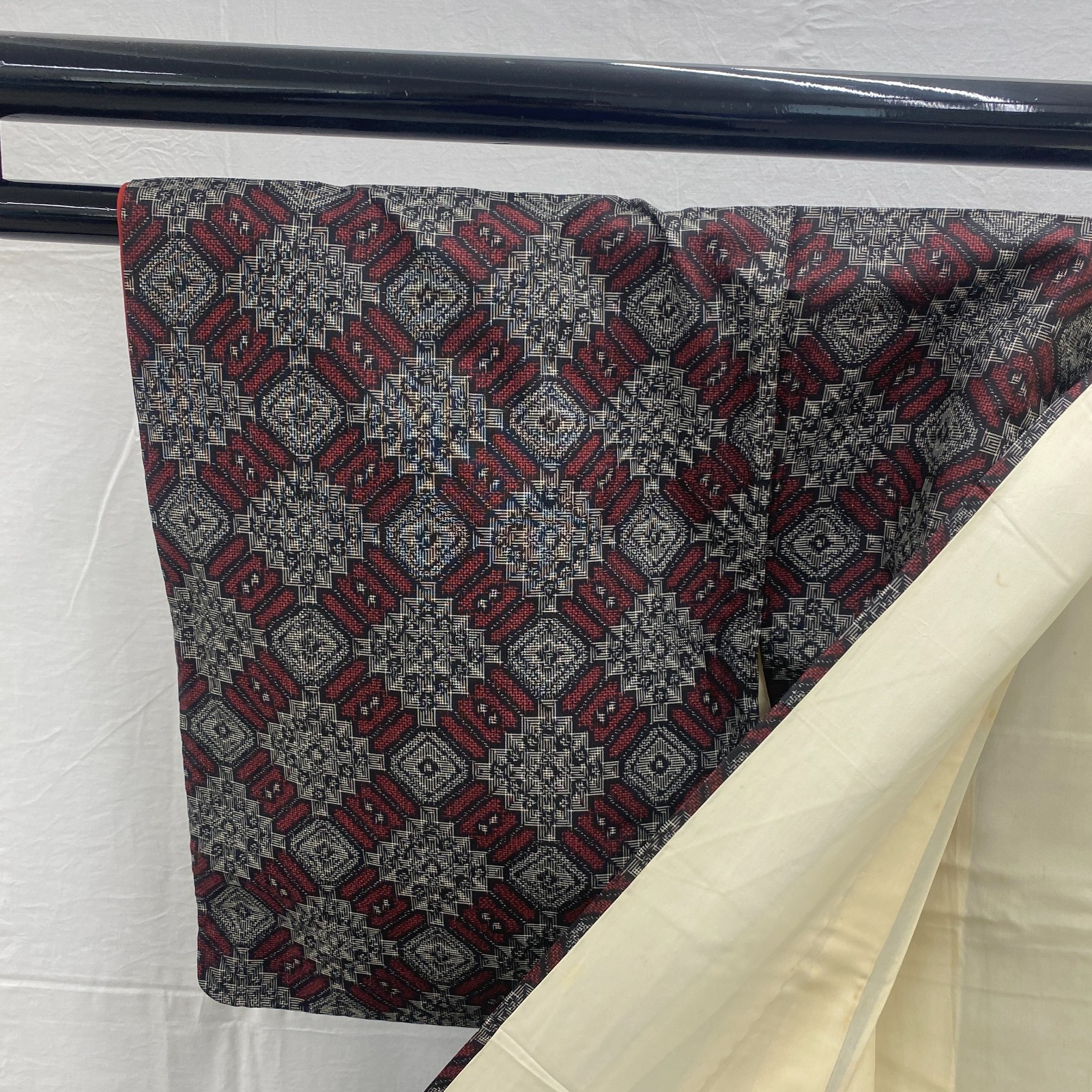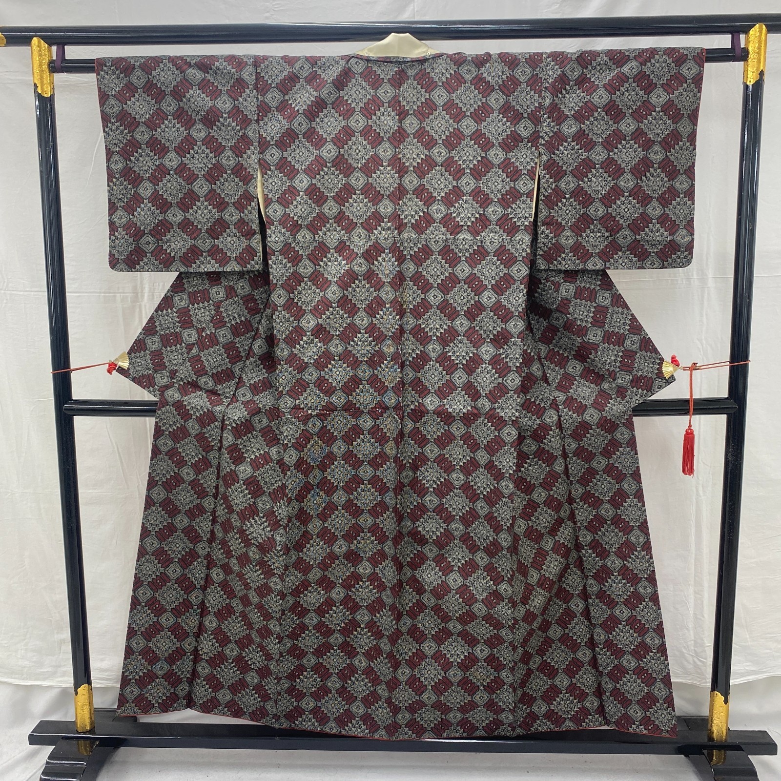 как выглядит Japanese Vintage Kimono Silk Gray Oshima Traditional Authentic Length 59in фото