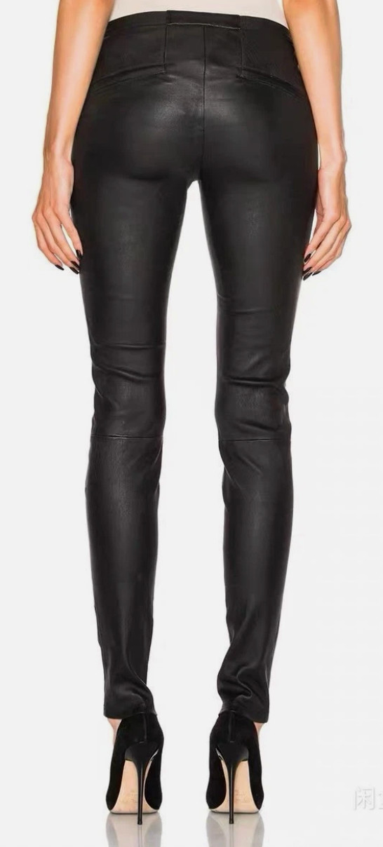 как выглядит Helmut Lang Lambskin Stretch Leather Pants Leggings Size 2 Black EUC фото