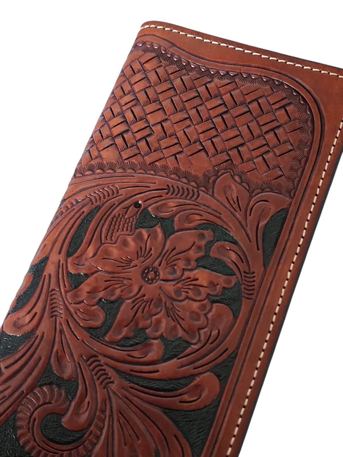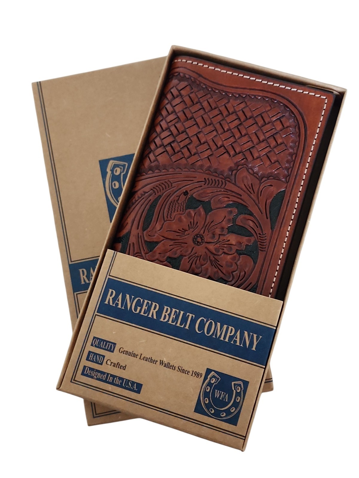 Ranger Belt Co H-02A Rodeo Wallet Tooled Leather Chestnut Western Snap Closure