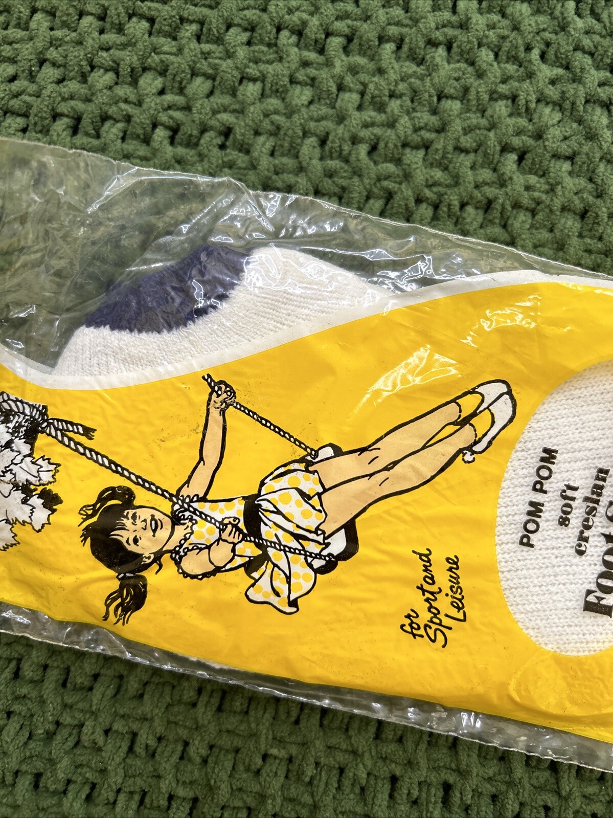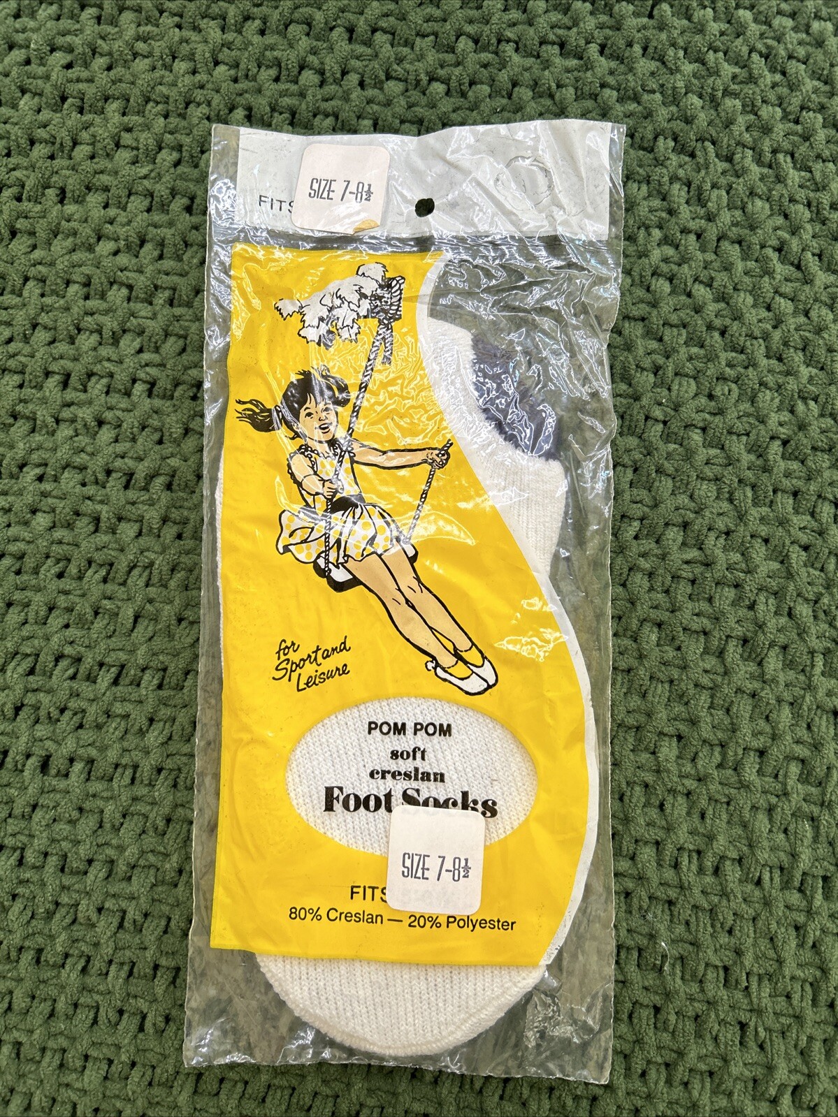 VTG Pom Socks White Blue 7-8.5 Girls Creslan 70s NOS No-Show Low-Cut Ankle