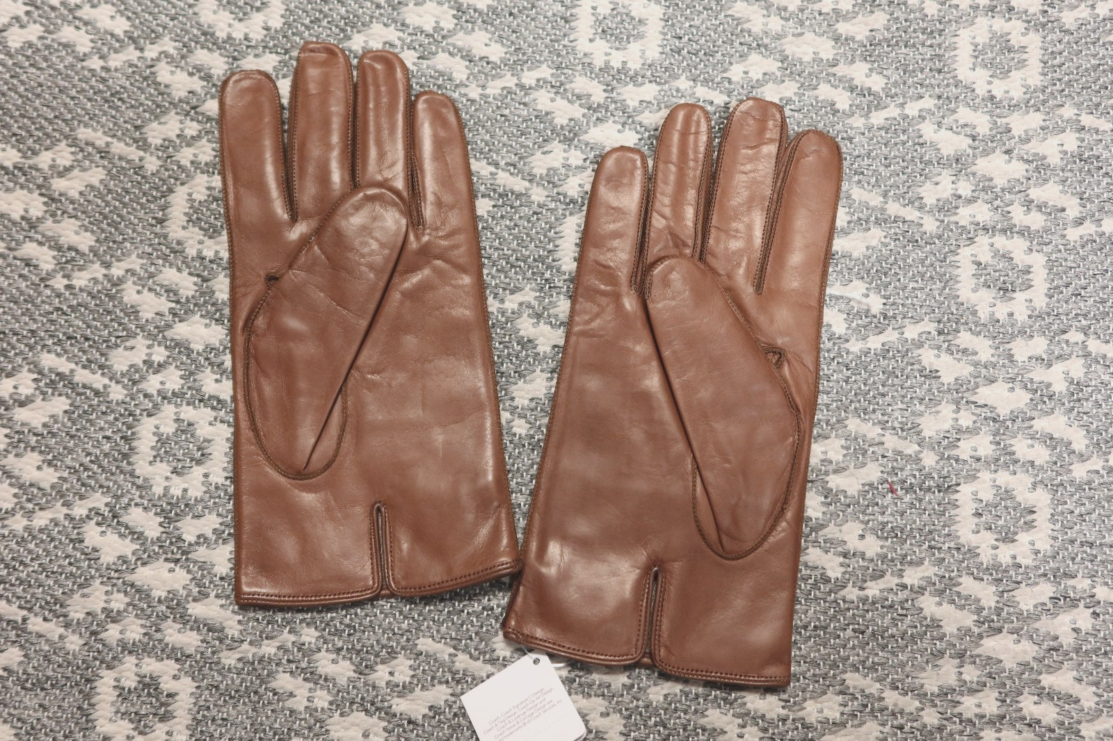 128 Coach Men's Cashmere Lined Basic Nappa Leather Gloves -MEDIUM - Fawn - New