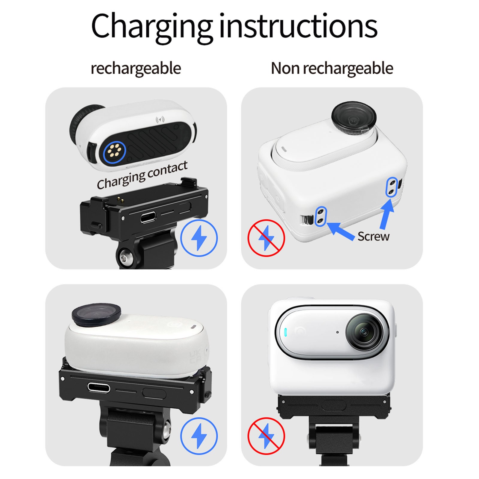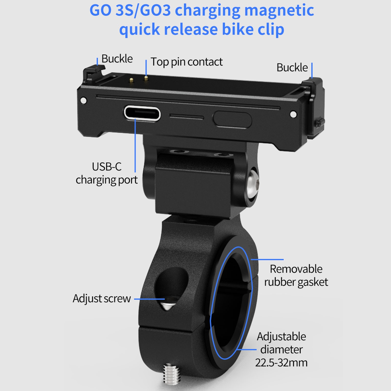 360 Rotation Aluminum Magnetic Charging Handlebar Mount for Insta360 GO 3/3S