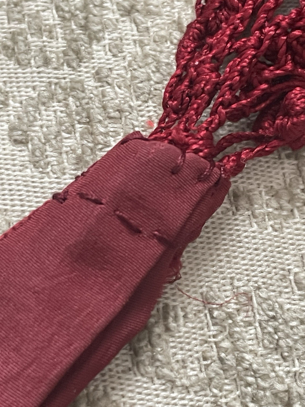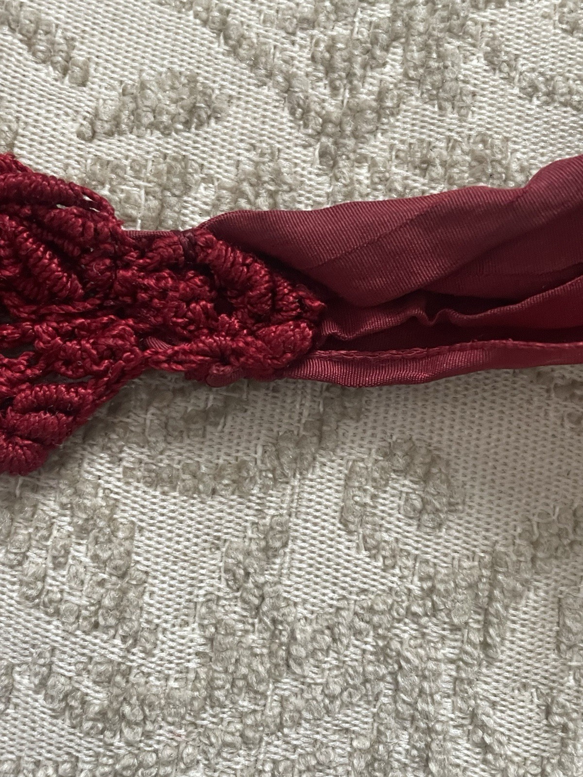 • Antique Circa 1800 s Crochet Edwardian Victorian Bonnet Stunning Cranberry Rare