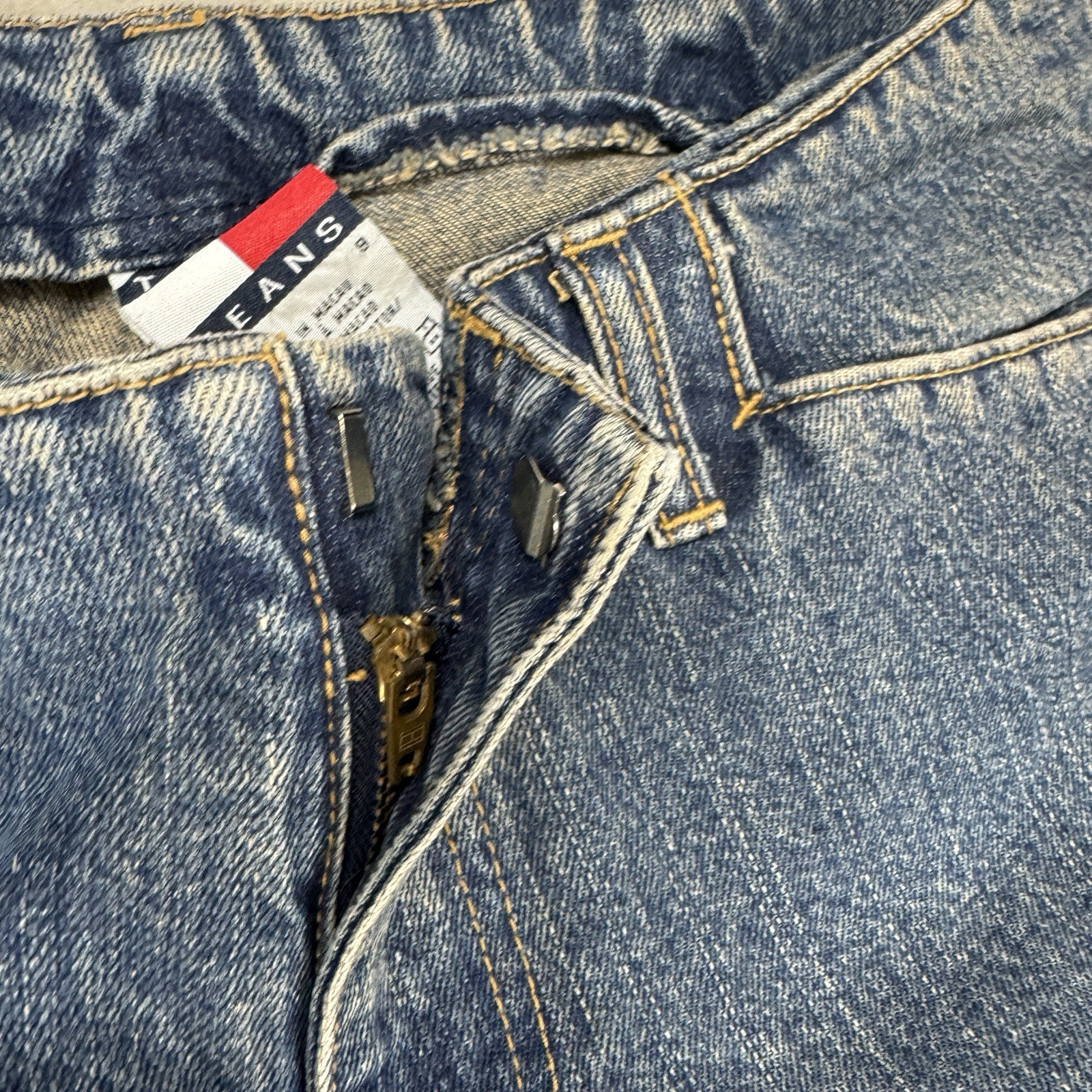 как выглядит Tommy Jeans Women s Low Rise Straight Jeans Size 9 Blue Y2K Slit Hem VTG Look фото
