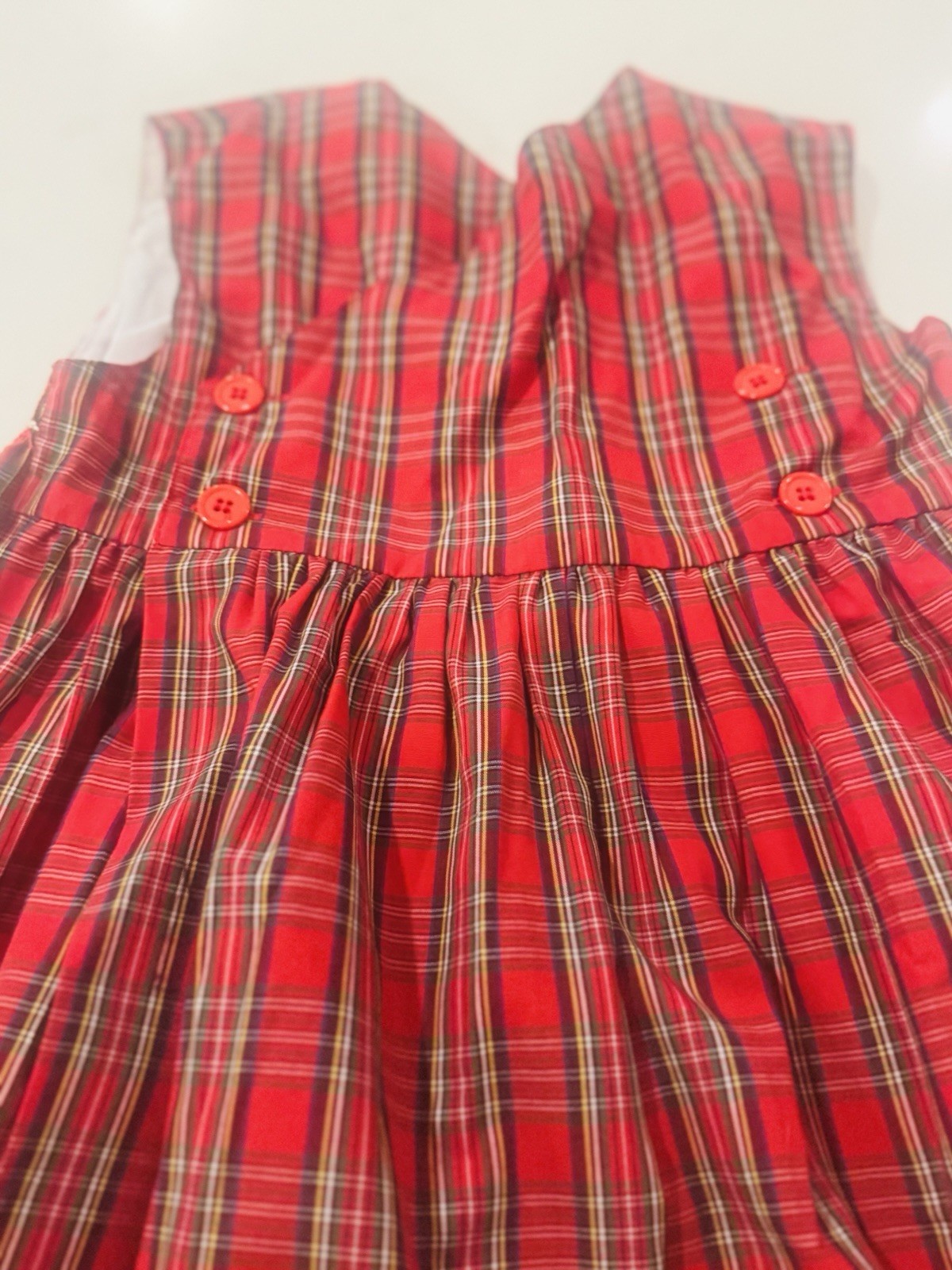 как выглядит Orient Express Vintage Girls Size 5 Red Plaid Smocked Christmas Dress Sleeveless фото