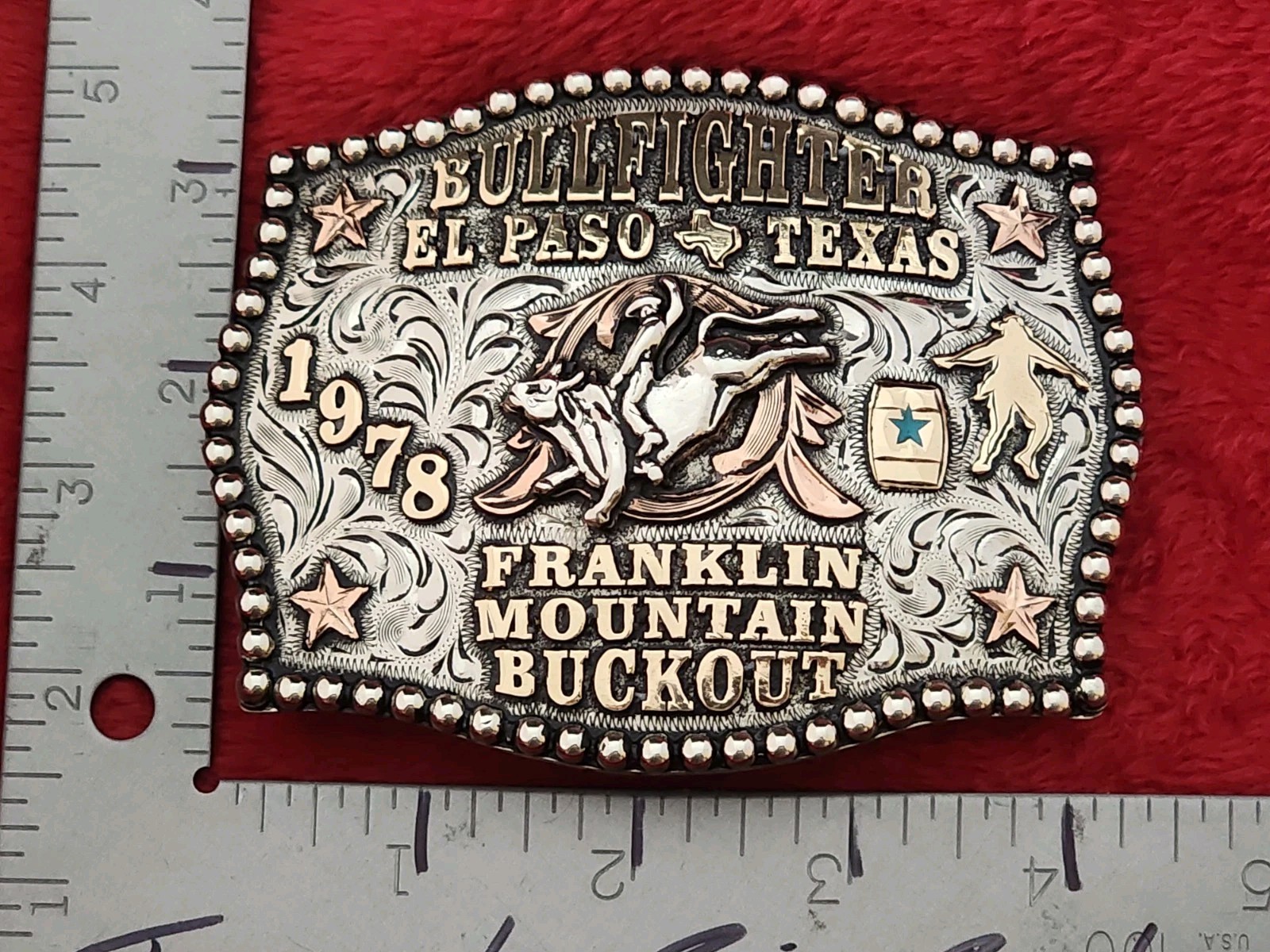 как выглядит Rodeo X Treme Bullfighting Champion 1978 El Paso Texas Trophy Buckle Rare X70 фото