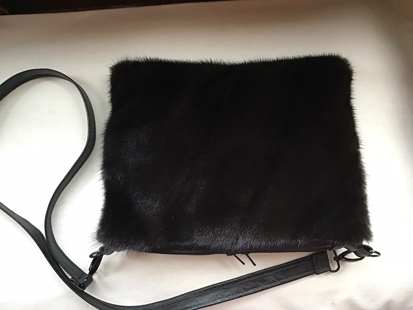 как выглядит Real Fur Purse / Hand Muff Black Mink 11 wide x 9 tall Soft Padded New фото