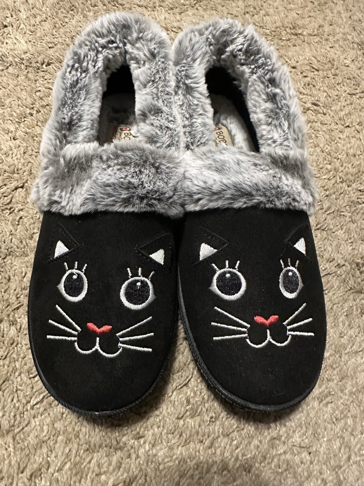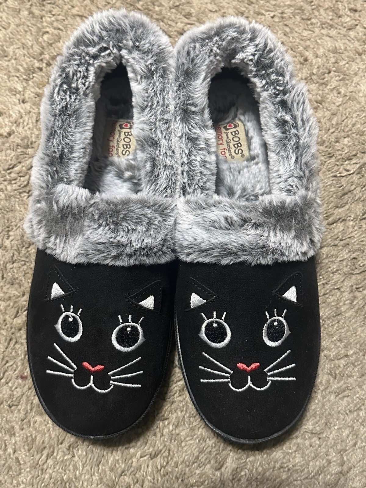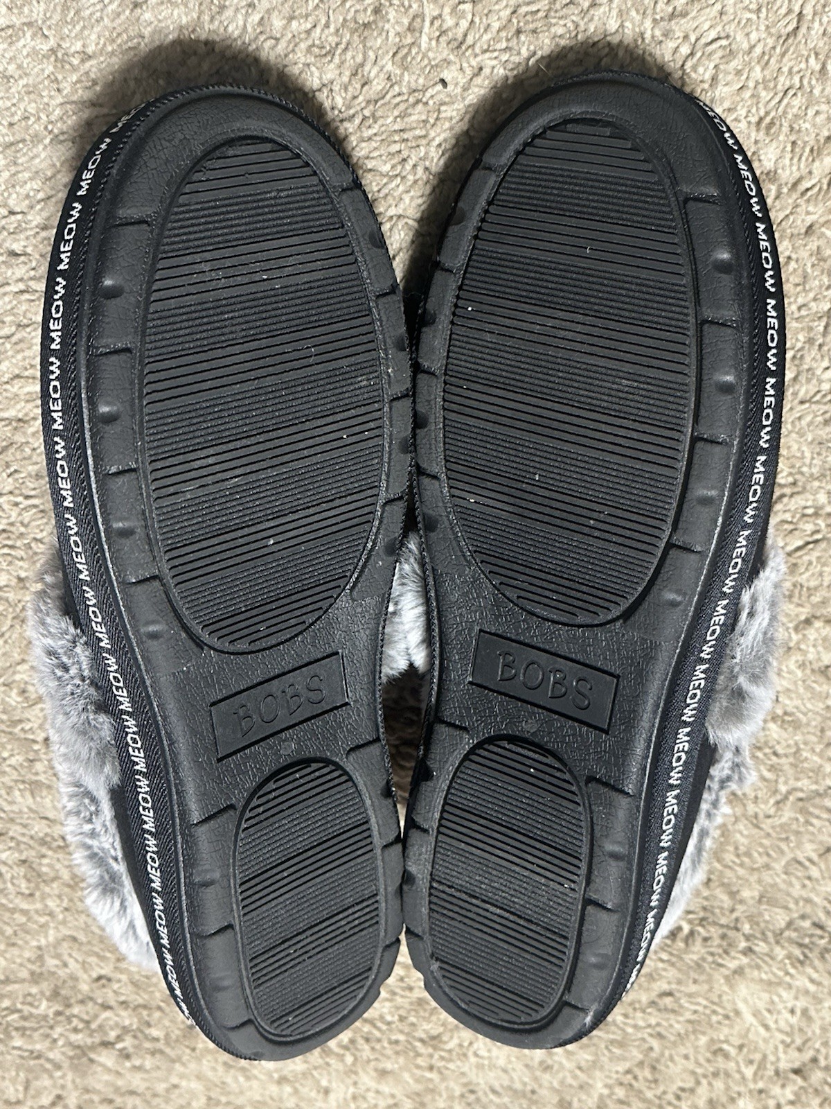 Bobs From Skechers Cat Meow Slippers Shoes Womens Sz 8 WORN ONCE Black Fur Lined