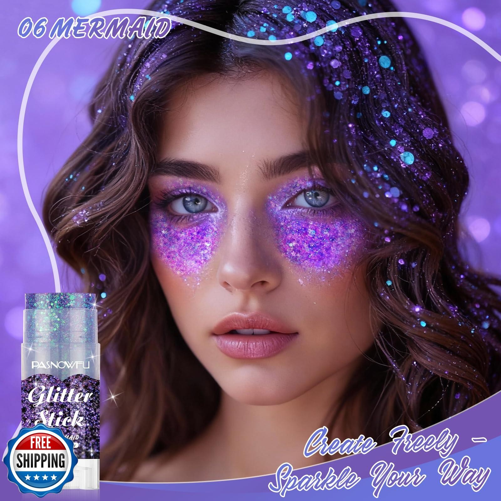 PASNOWFU Purple Body Glitter Stick, Mermaid Style Face Glitter fo