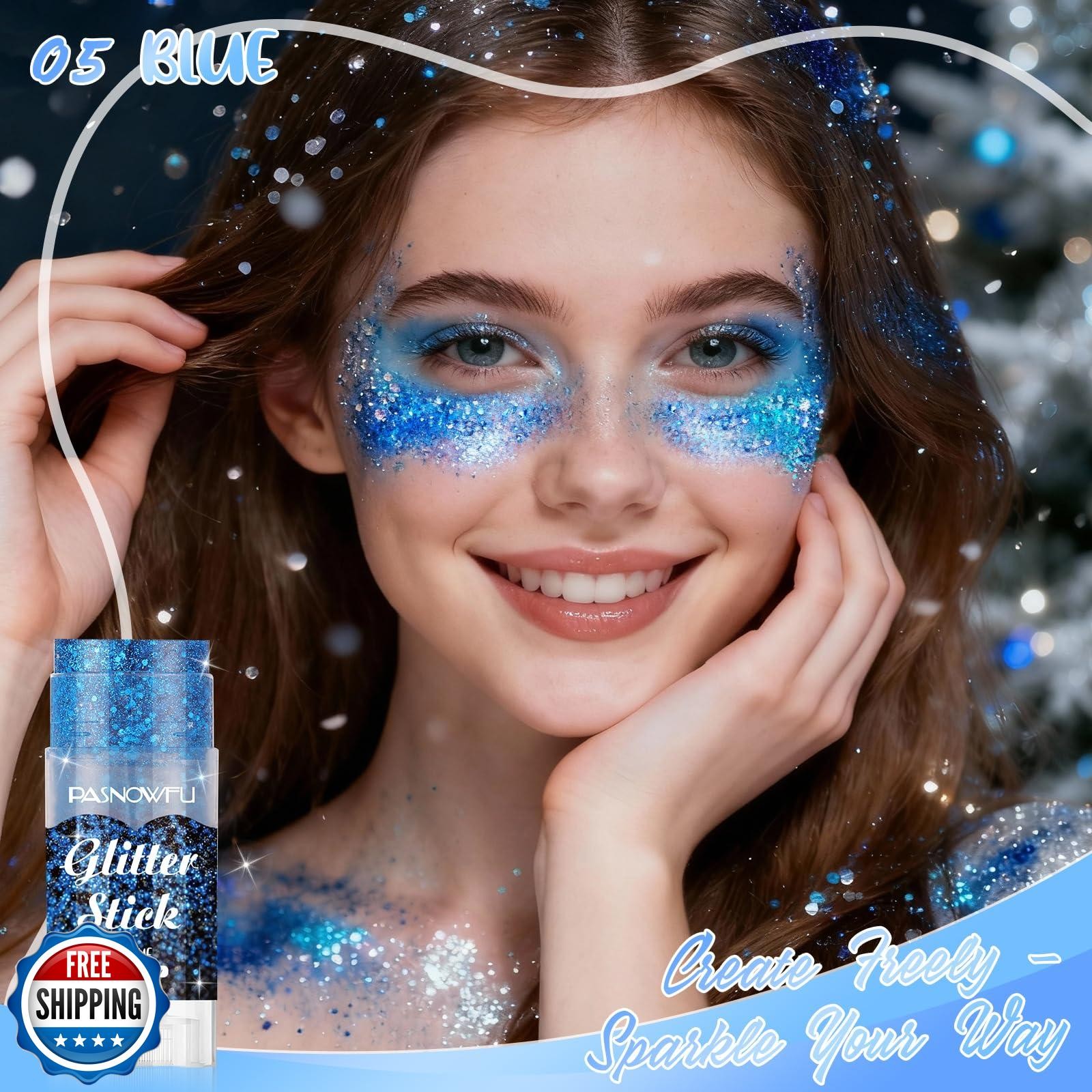 PASNOWFU Blue Body Glitter Stick, Fantasy Face Glitter for Women
