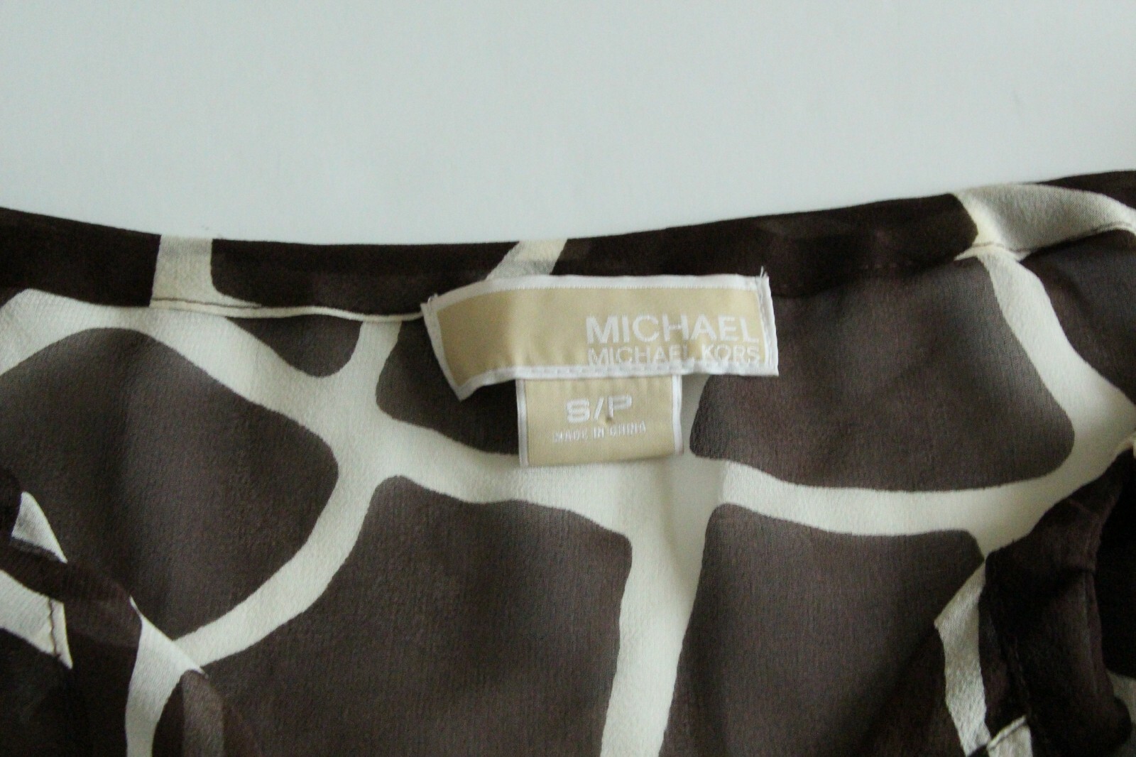 Michael Kors Animal Print Silk Tunic Top Beach Cover-Up Women's S Brown