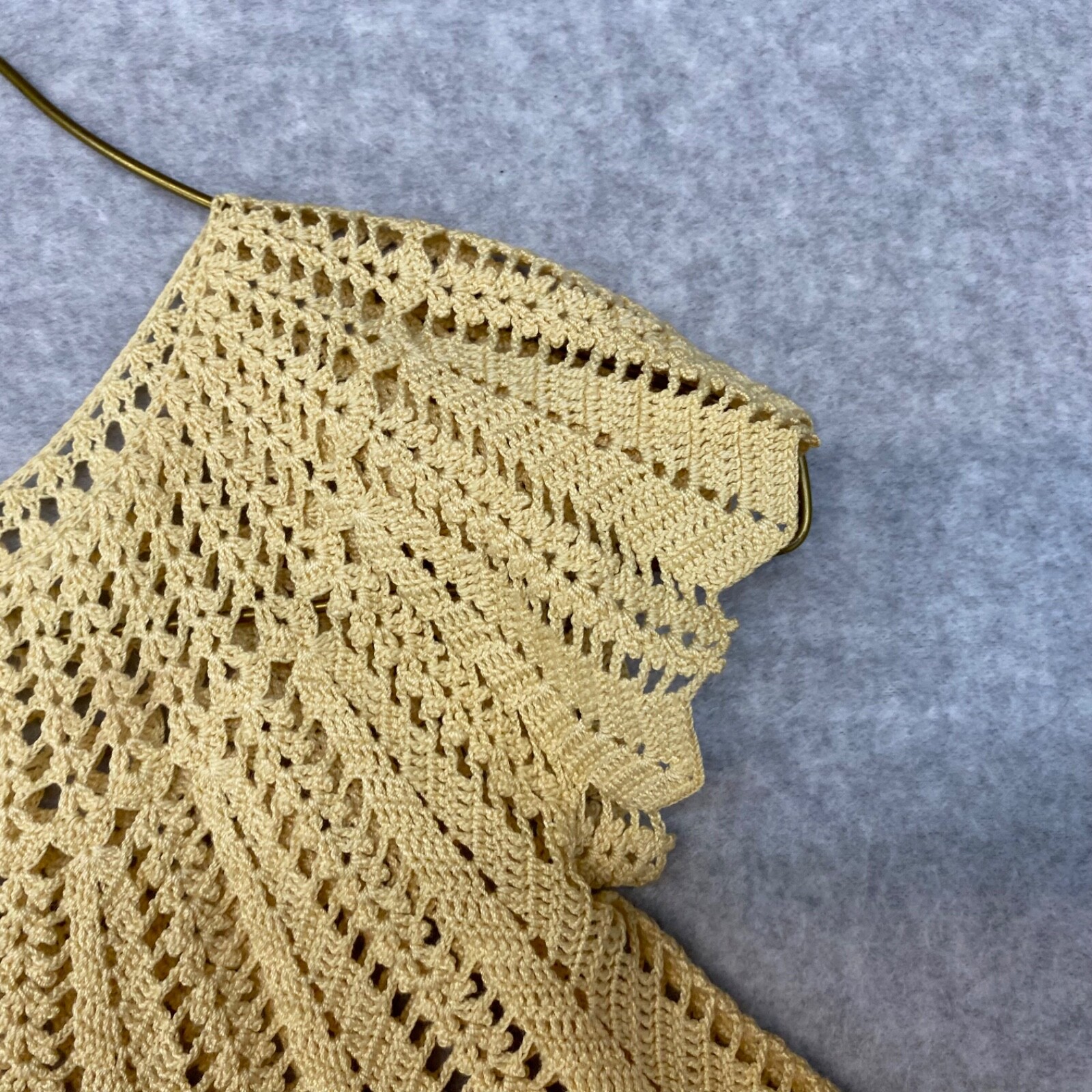 как выглядит Vintage Crochet Baby Dress Short Sleeves Cheveron Hem Light Tan фото